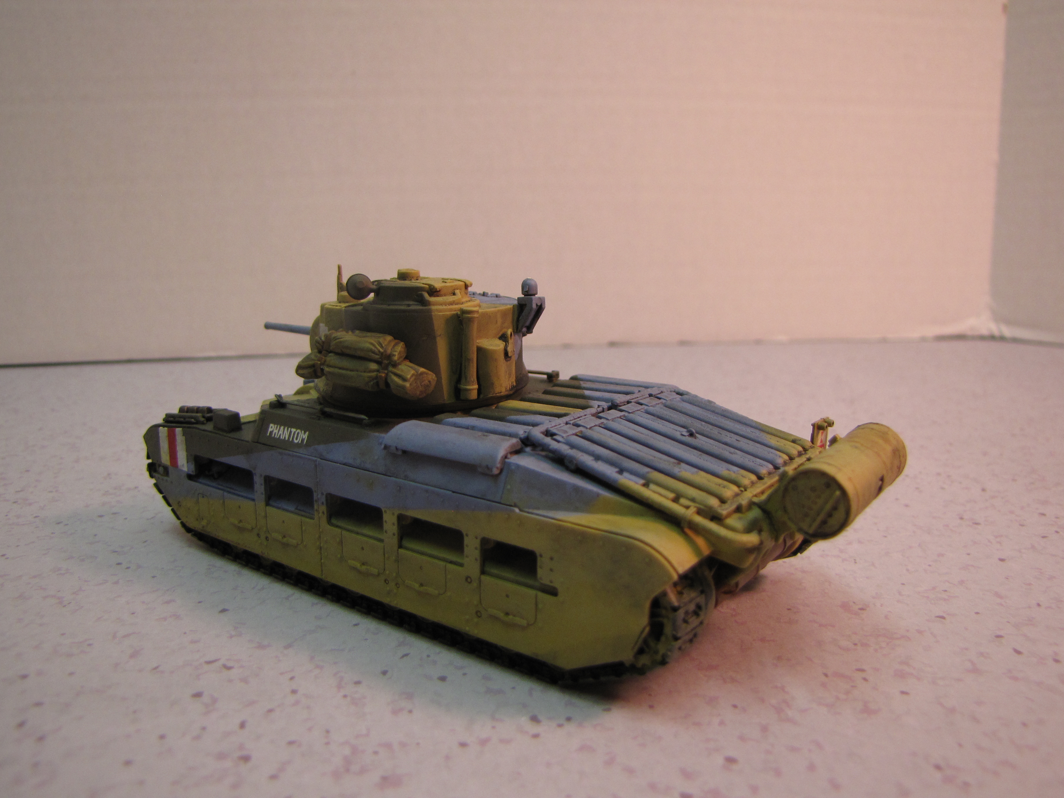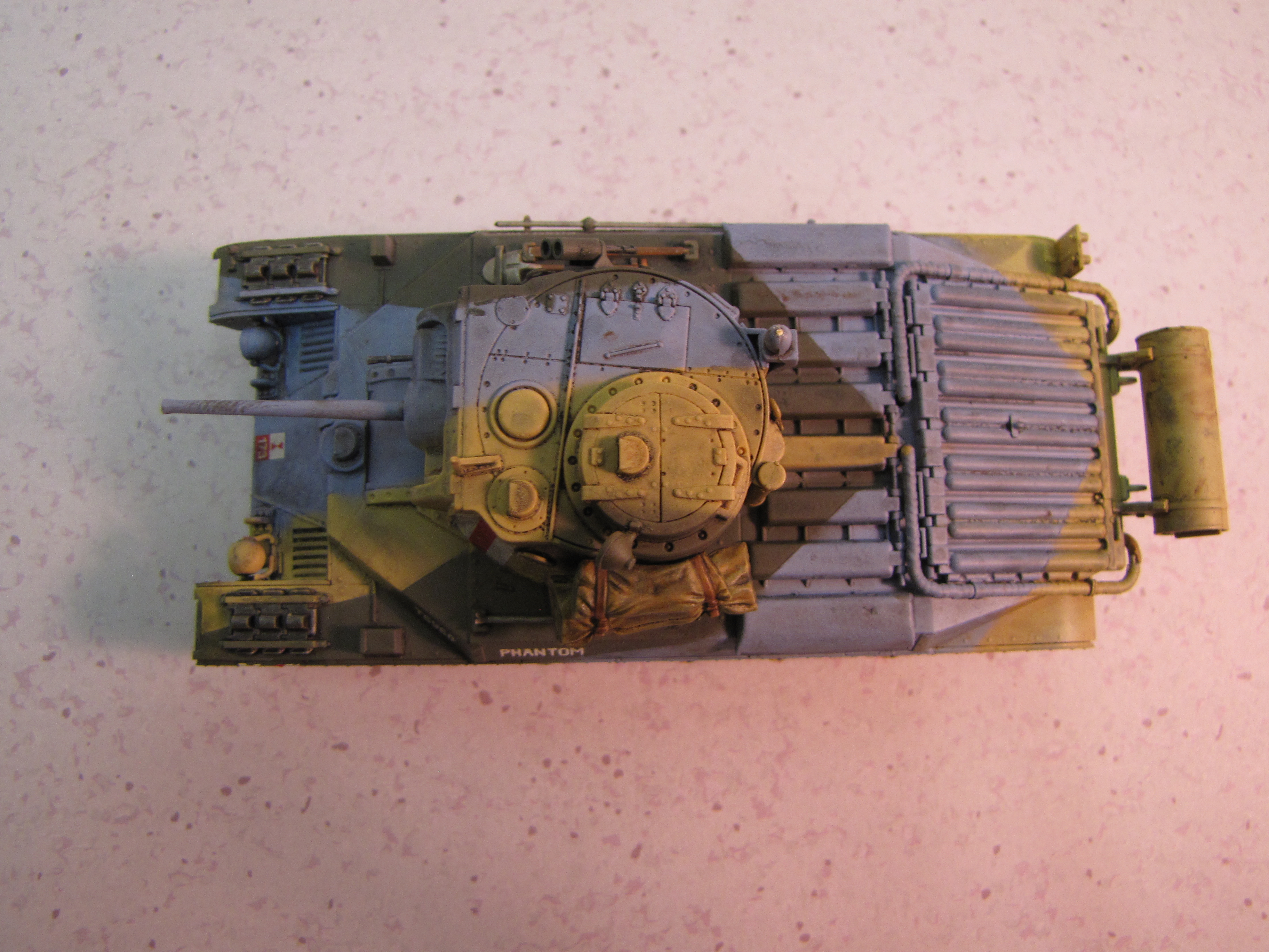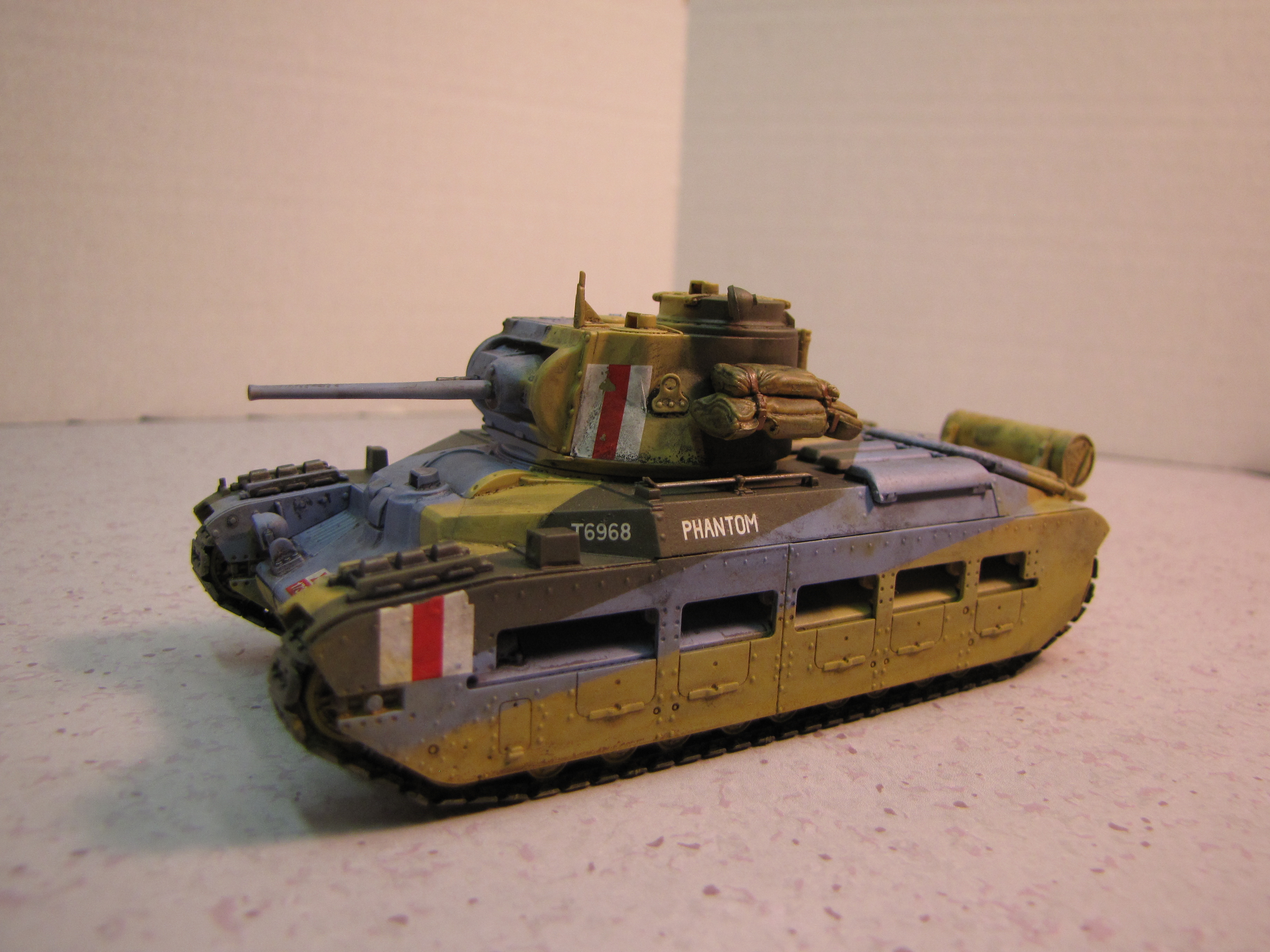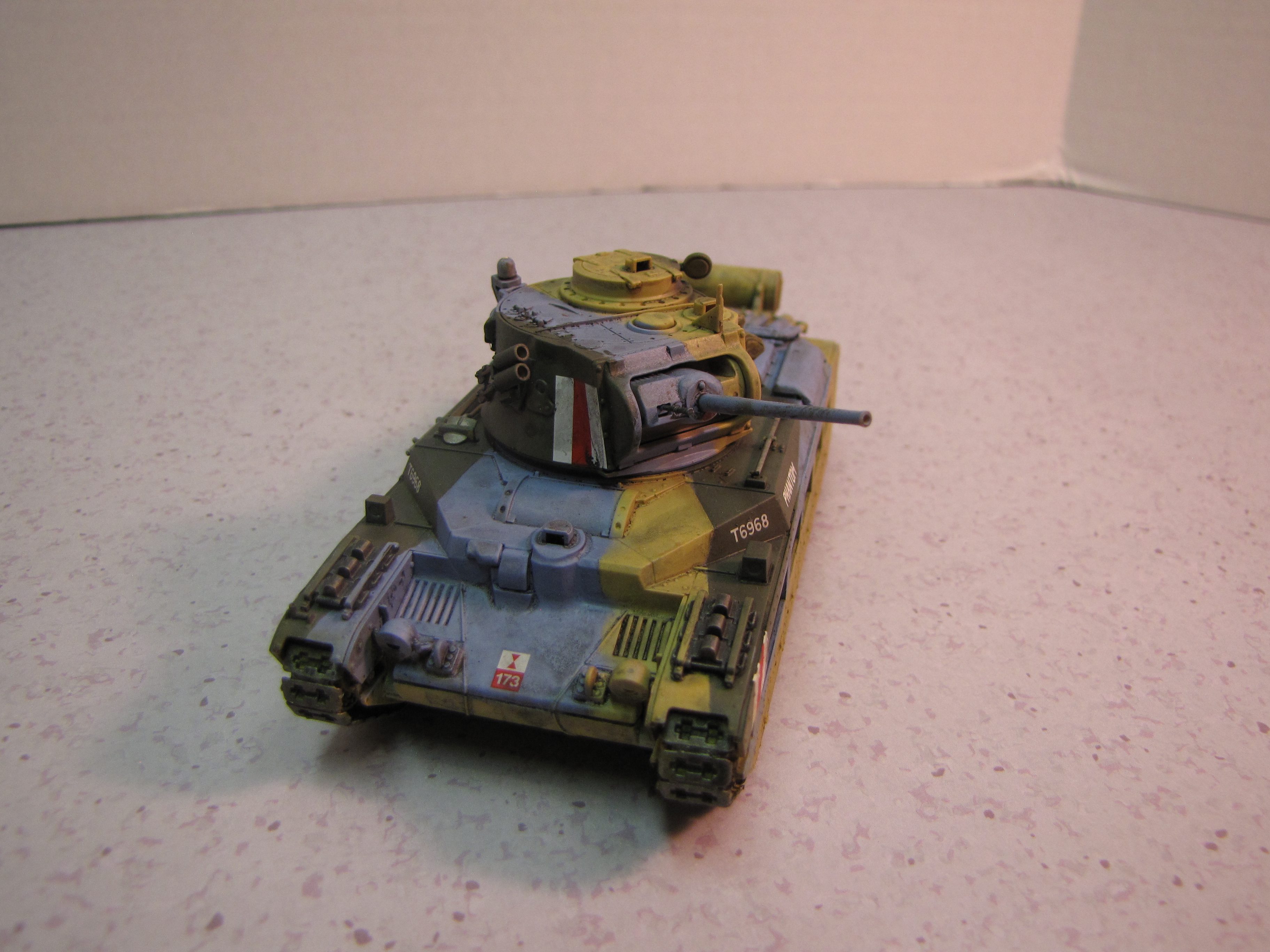 I chose this subject purely because I like the camouflage. British tanks were generally green at the start of the war. But when the British Army deployed to North Africa they quickly realized dark green was not the ideal color! So sand, brown and sky blue were all used in a sort of splinter scheme. I believe the idea had to do with breaking up the outline to make it more difficult to judge range and movement. This is a slightly different philosophy than a pure “hiding” sort of camouflage. I know this idea had been discredited for ships by the end of World War I, but apparently the British Army thought it might work better for tanks. Did it work? Well, modern armor isn’t painted like this…