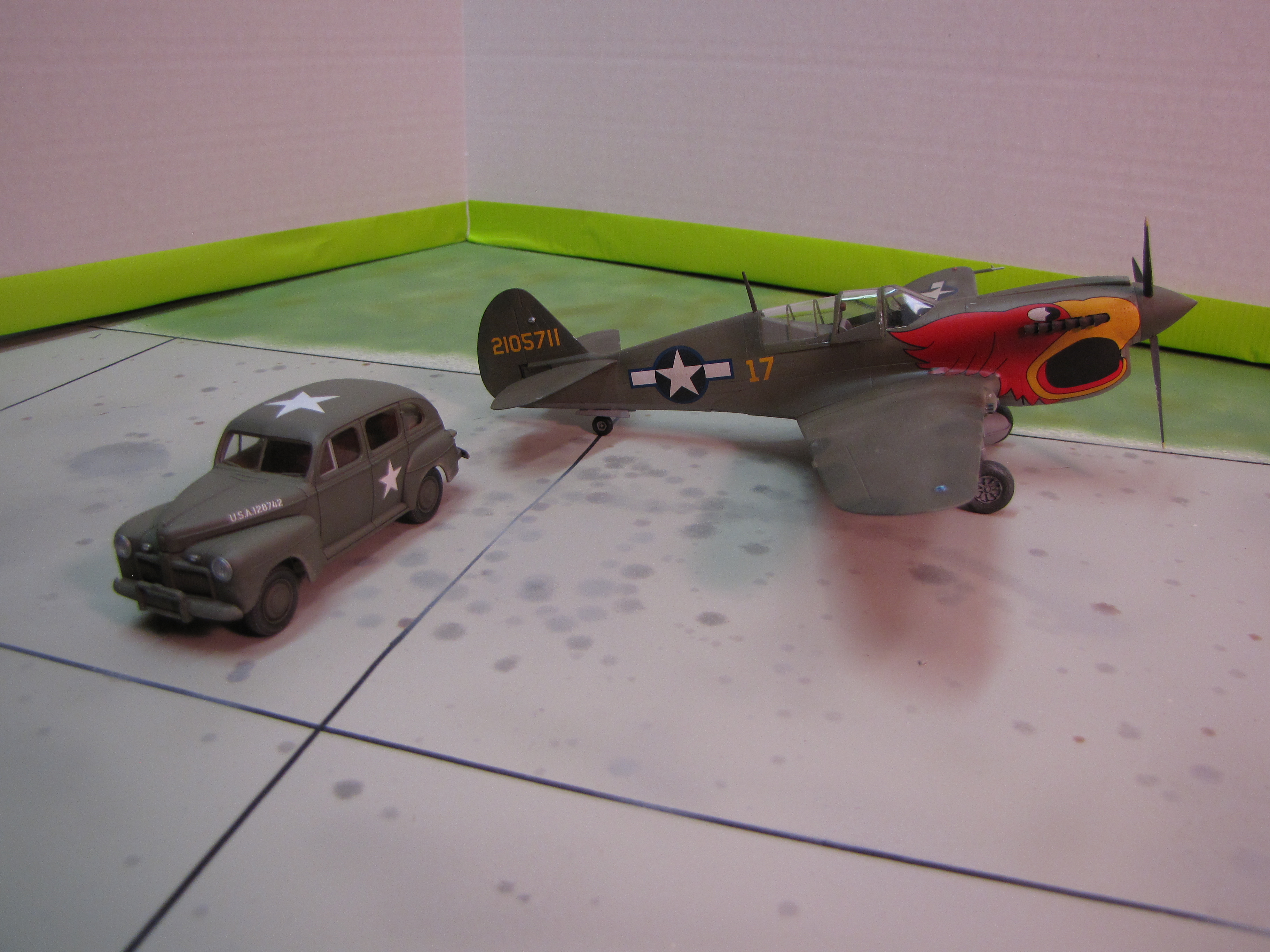 When I got back into building many years later, I quickly decided I wanted all of my subjects to be scaled correctly together side by side.  It is so satisfying to my obsessive little mind to see a Mustang and Thunderbolt right next to each other and know that difference in obvious mass is appropriate and as it should be.  Or if I park a 1942 Ford Sedan right next to a P-40 it’s telling something about how big both objects are.  I’m not really big on figure models, but many kits have some included and I’ll occasionally paint one up, in part because no scale reference is better than a human figure.