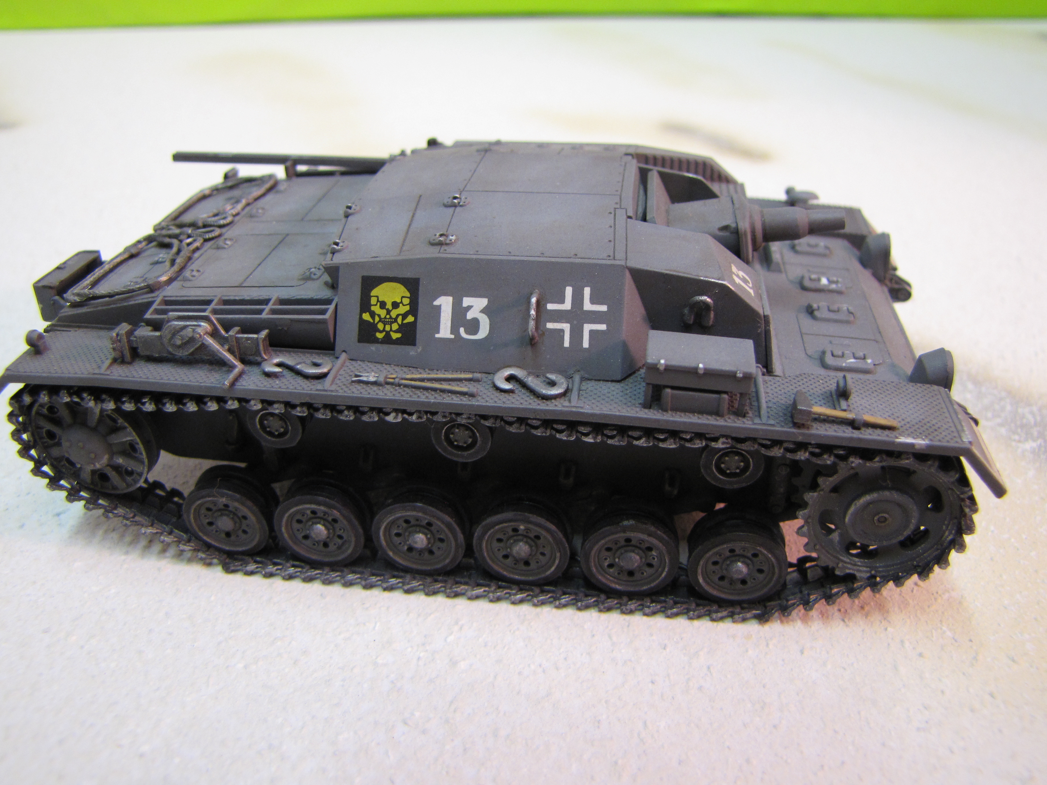The Sturmgeschutz III, more commonly known as the Stug III, was the result of retasking the chassis of the obsolete Panzer III tank. Actually, the design and construction started even before the Panzer III was known to be obsolete; but it continued in production until the end of the war. Over 10000 Stug IIIs were built, making it the most numerous German AFV.