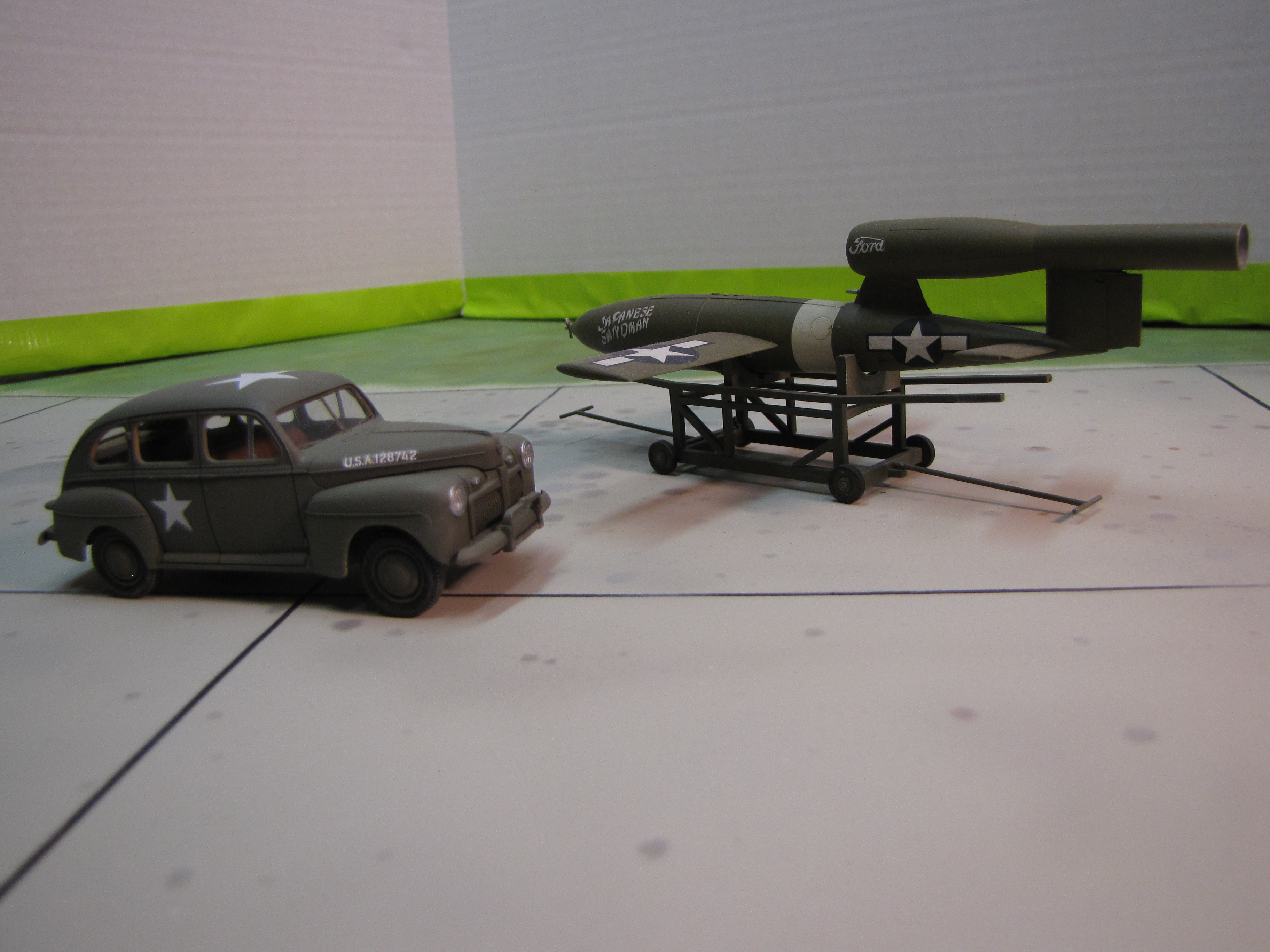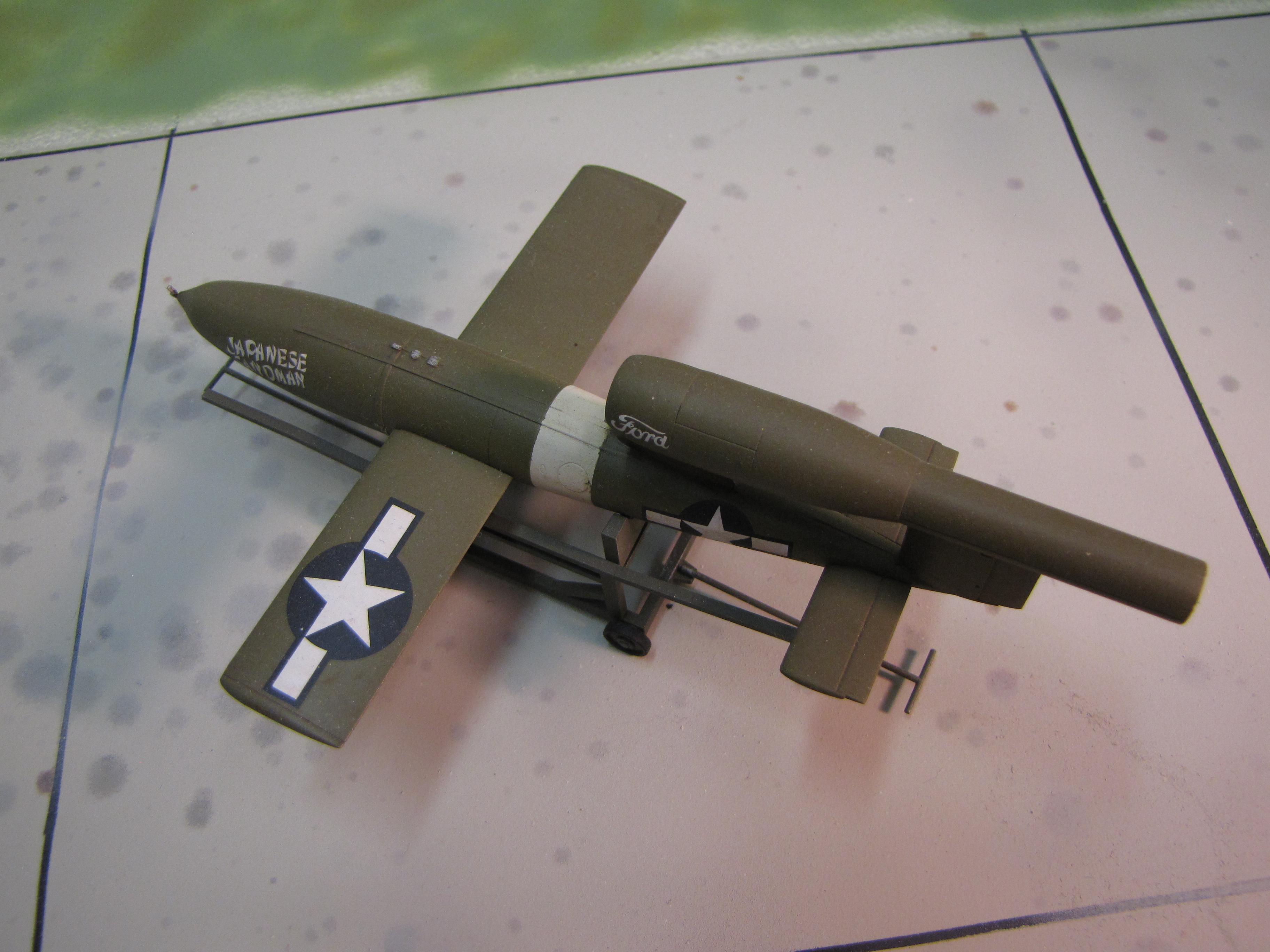 The JB-2 Loon.  This is nearly identical to the V1 except for the shape of the forward engine support strut. I did the modification with styrene rod and contour putty.  The decals are from Cutting Edge.