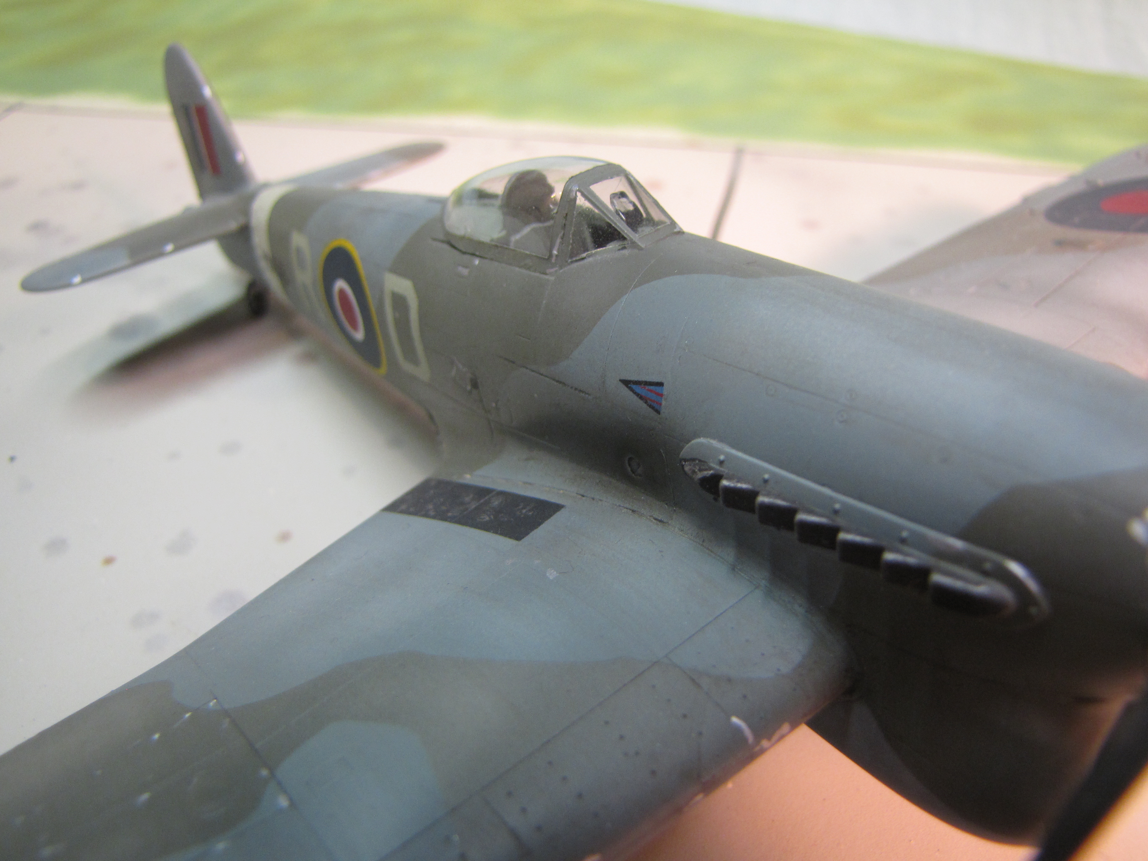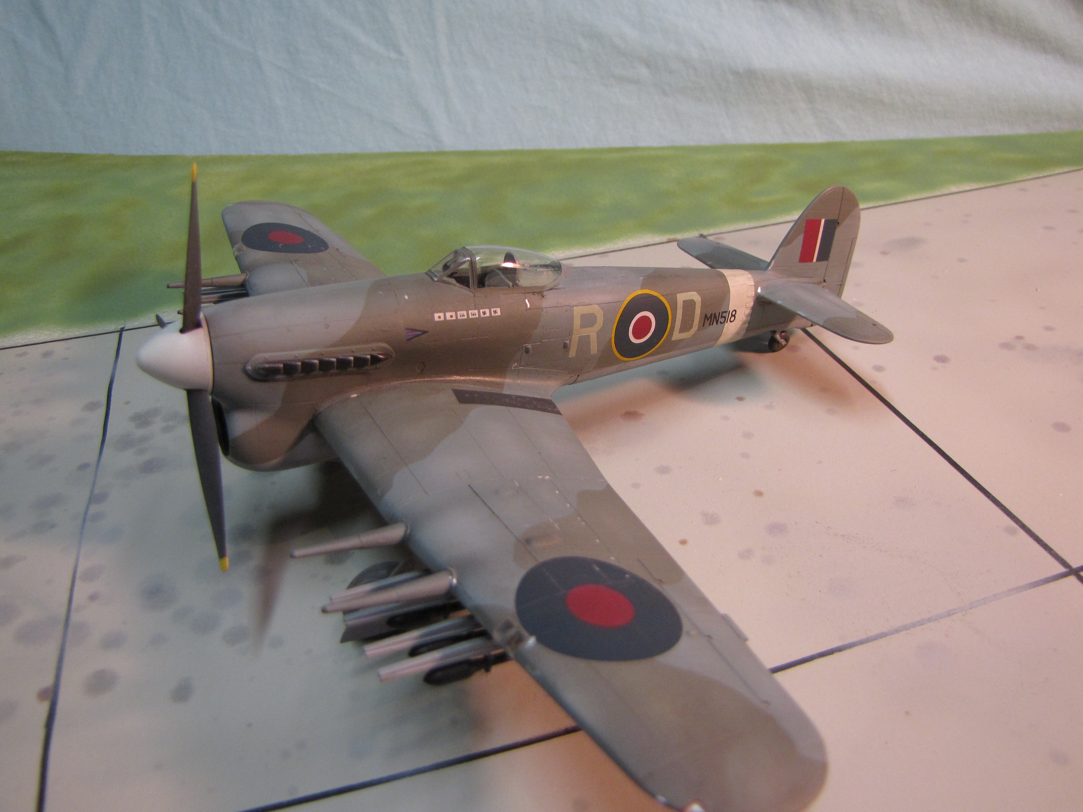 This is the Hasegawa kit with Super Scale decals.  It was flown by Wing Commander RTP Davidson of 143 Wing, 2nd TAF.  W/C Davidson has one of the more diverse score tallies of the war, having made ace by destroying two Japanese, two Italians and two Germans.  He did his part in destroying the Tripartite Pact!