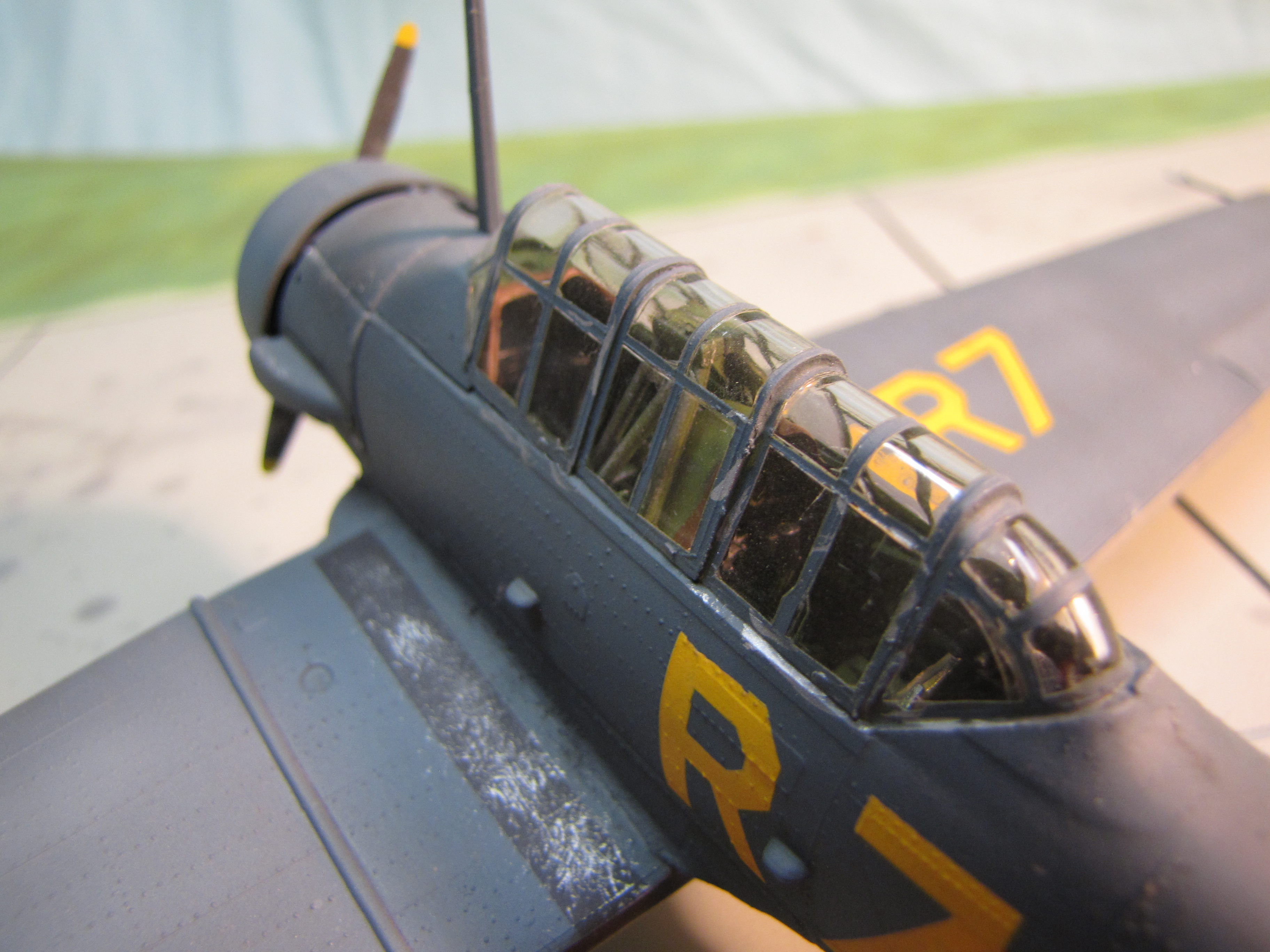 The aircraft shown here was a Navy Gunnery trainer in 1943 at NAS Alameda.  As a gunnery trainer it has a .30 on the right side of the nose.  This was a common modification for such types.