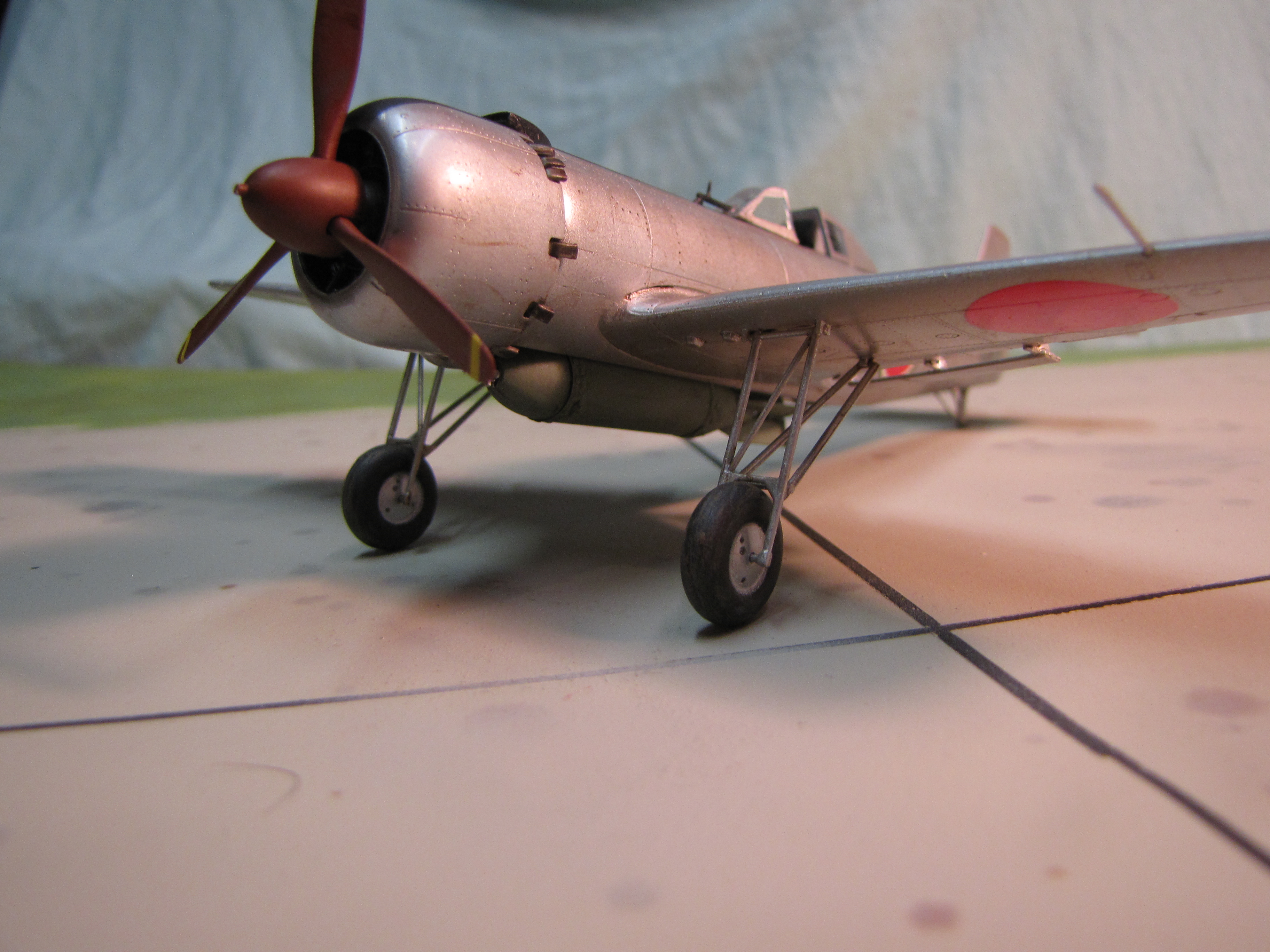 What were the Allied occupation troops to make of this airplane?  About a hundred were found complete in hiding.  Many hundreds more were under construction.  8000 had been ordered.  Complete examples were powered by a 1150 HP Nakajima engine, but with a provision for a variety of engines to be fitted (especially older, obsolete engines the Japanese had plenty of).  The construction was of wood and steel, non-strategic materials.  The fuselage was tubular, a fairly simple shape to manufacture.  The canopy was only semi-covered.  The landing gear was not retractable; it was jettisonable.  In fact the original landing gear didn’t even have any shock absorption.  The only armament was a single bomb under the fuselage that, unlike the landing gear, was not jettisonable; it was fixed in place.