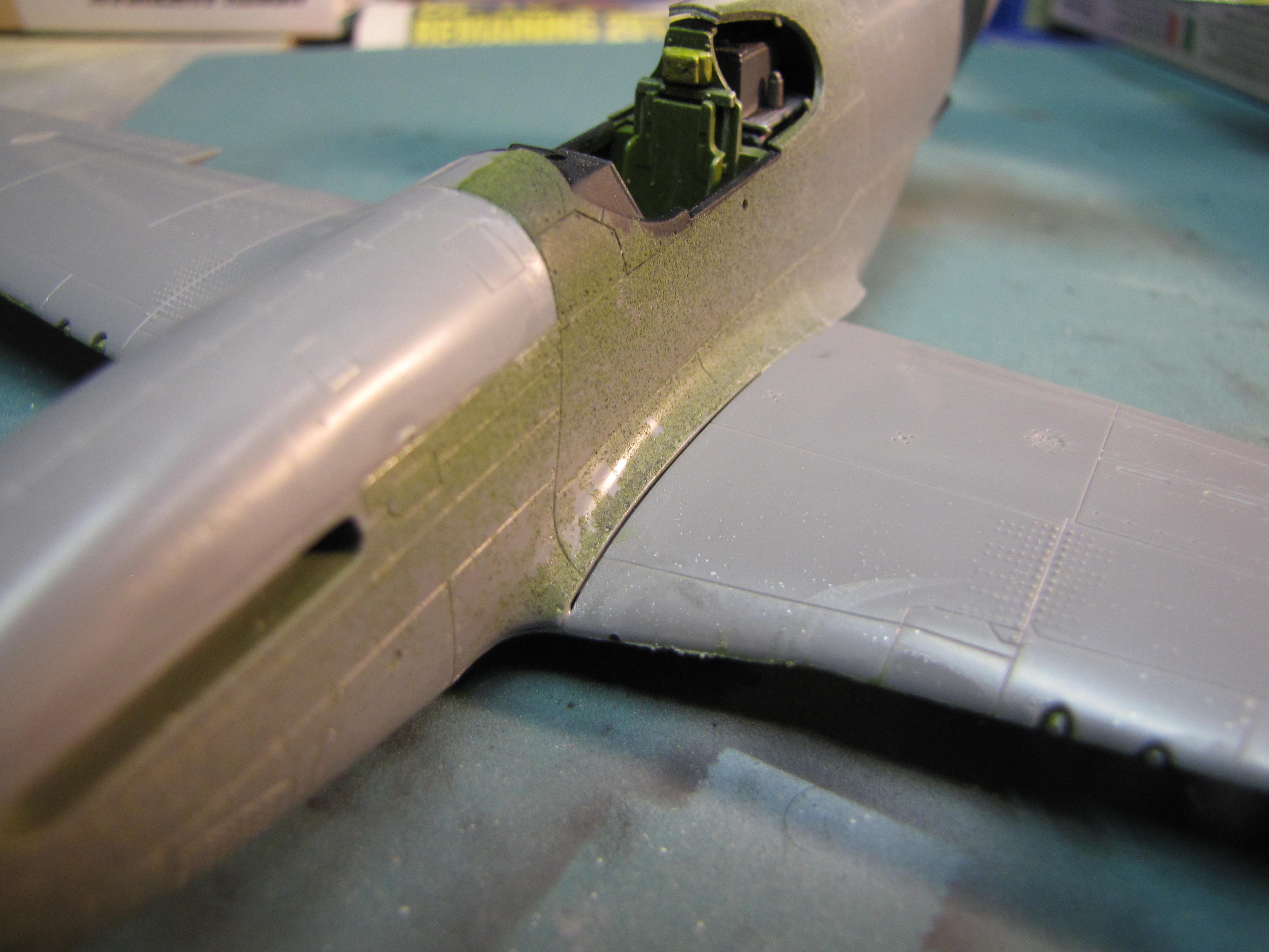 But it’s big enough it does require some attention. There a few different ways of fixing such gaps, but the easiest way is with a fun product called “Mr Surfacer”. This is essentially a very thin contour putty. I load some up on a toothpick and run it into the seam. Tomorrow I’ll clean this, and a few other seams up before a few detail parts go on.