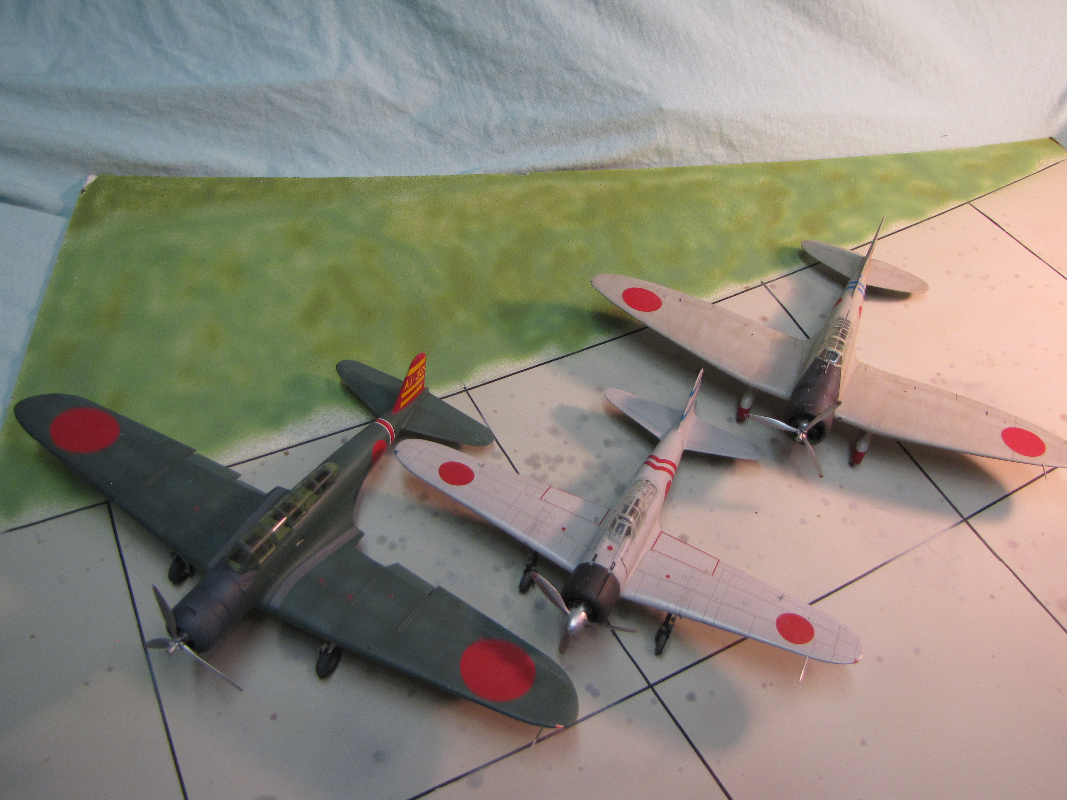 The main naval strike aircraft used by Japan at the start of the Pacific War. A B5N Kate (torpedo bomber), A6M Zeke (fighter) and D3A Val (dive bomber).
