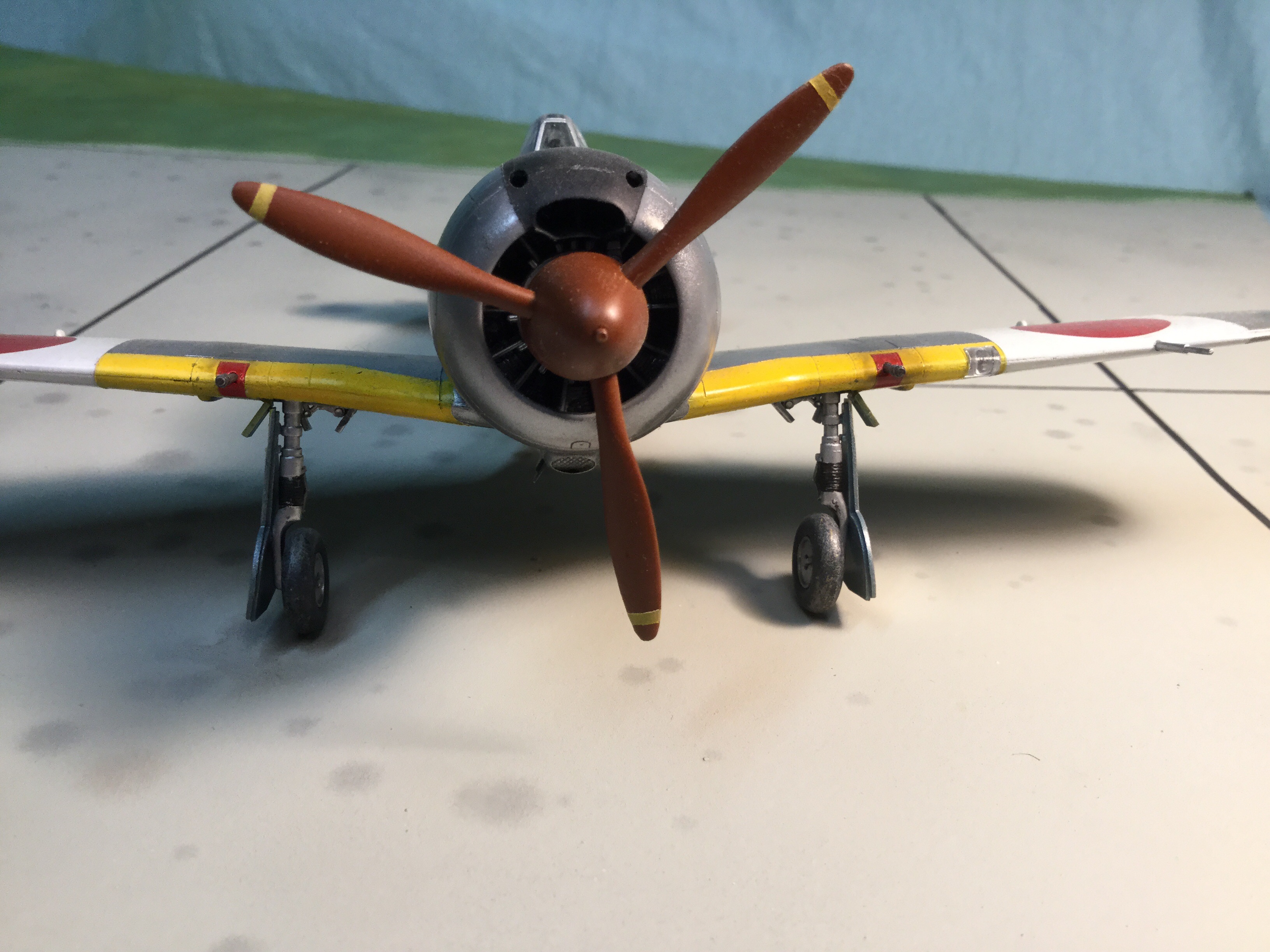 This subject is from the Hasegawa kit with Aeromaster decals.  This aircraft was assigned to Warrant Officer Makoto Ogawa.  The six eagles on the side of his plane represent his six B-29 claims at this point.  He would finish the war with 9 kills, seven B-29 and two P-51.  At least one of those B-29 kills was scored at night.  His preferred method of attack was from head on and below.  Many experienced pilots, both Japanese and German had discovered similar tactics to be most effective against American Heavies.  Although usually this works out to the dreaded “twelve o’clock high”, perhaps the Tojo’s struggles at high altitude account for WO Ogawa preferring the twelve o’clock low attack.  Or it may be because the B-29’s defensive strengths are little different than a B-17 or B-24. Either way, head on is a difficult problem for defensive gunners.