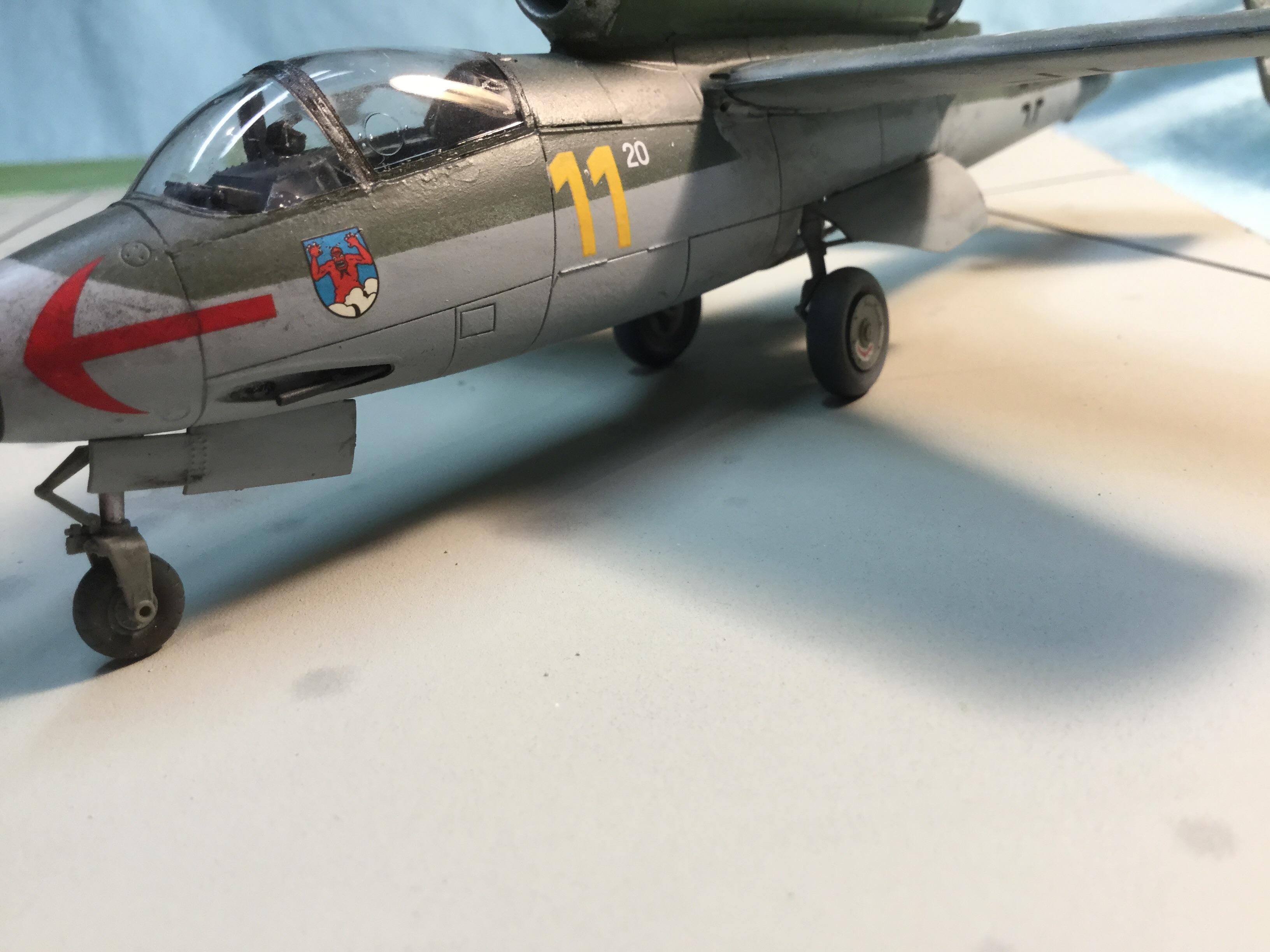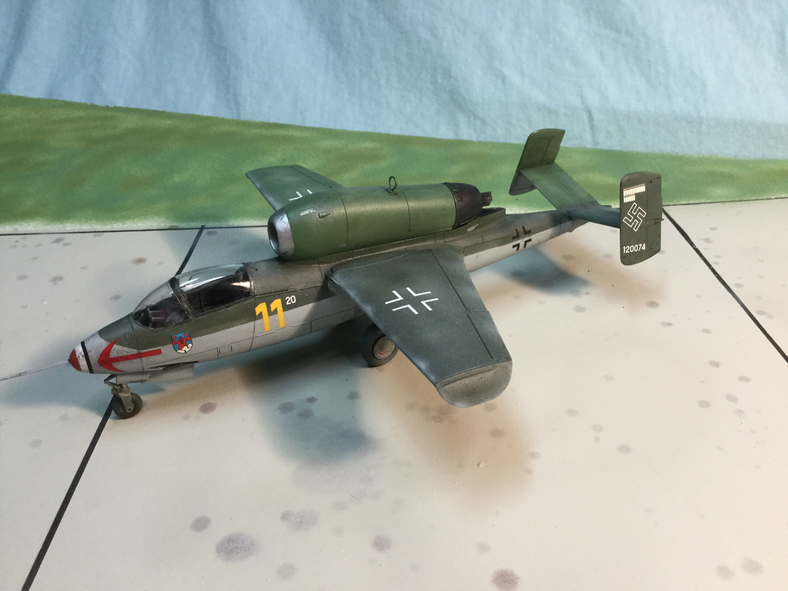 Beautiful finish again Dave, and a great and informative article. Despite the shortcomings of the Hienkel 162, I have always had a fondness for the aircraft. I think it’s ironic that, the Luftwaffe that swept across Europe in ’39-1940 ended the war having to initiate an ’emergency fighter programme’ flown by boys from the Hitler youth. Yet despite it’s inherent design flaws, British test pilot, Captain Eric “Winkle” Brown of the Fleet Air Arm (FAA), who flew it not only during post-war evaluations, but went on to fly it for fun after testing had completed, considered it delightful to fly, and referred to the 162 as a “first-class combat aircraft.” Thank you again for a first-rate article.