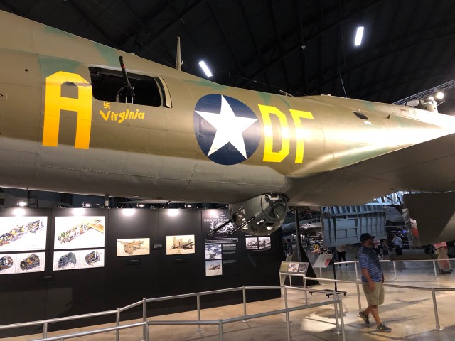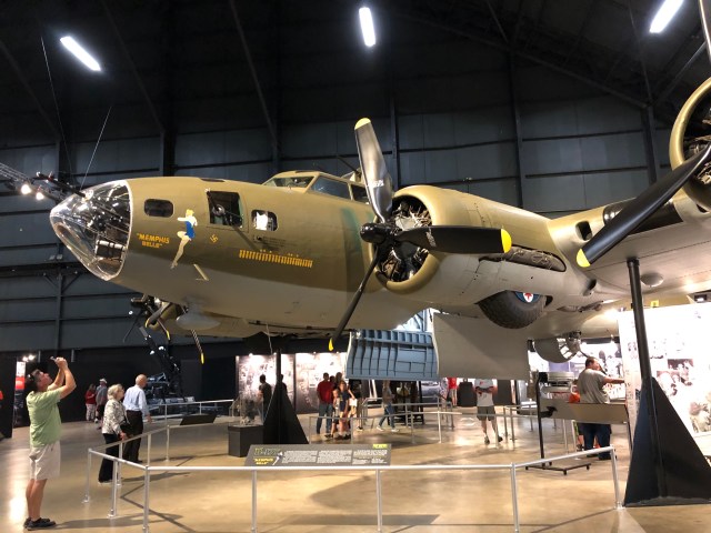 As a bonus, the Museum’s IMAX Theater was showing a newly restored print of William Wyler’s 1943 classic movie Memphis Belle. This was from the original 16mm film that has been kept by the film-maker’s family. So it was better quality to begin with than even the prints that first ran in wartime theaters. The restoration removed all scratches and was in vibrant color. Just stunning to see.