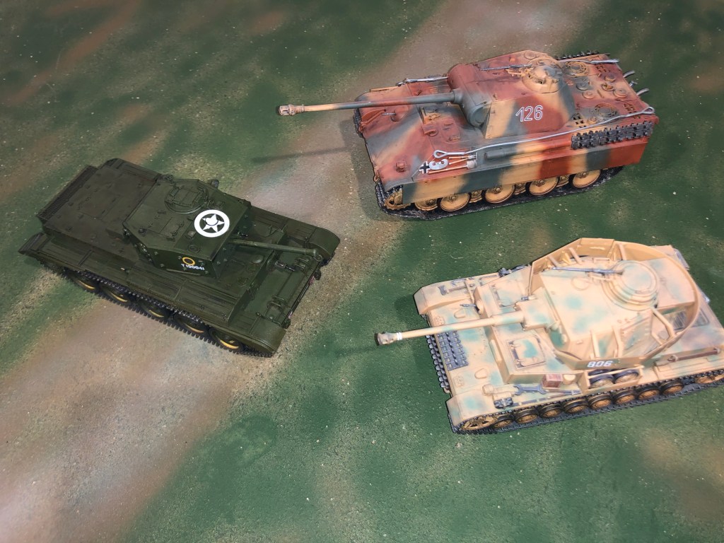 This particular tank served with the 7th Armored Division, Summer 1944. It is from the Tamiya kit.