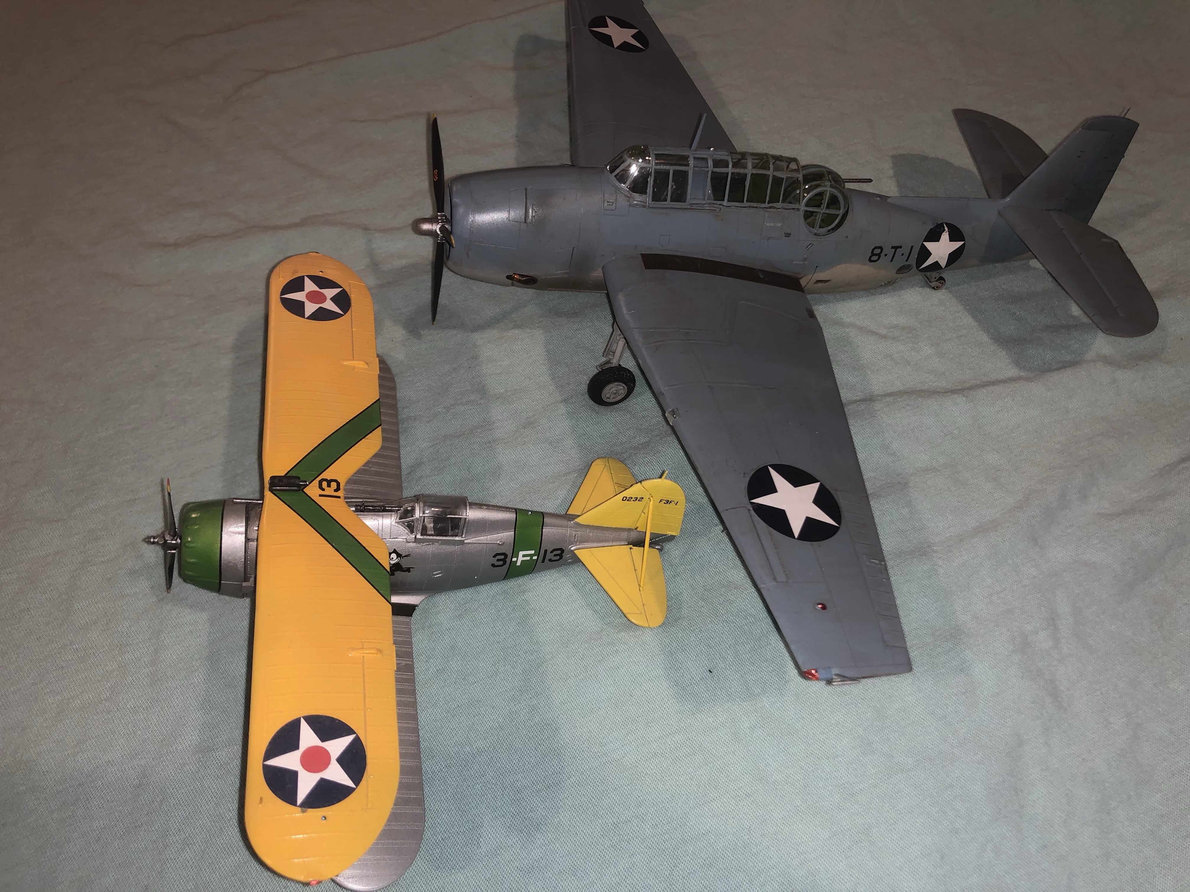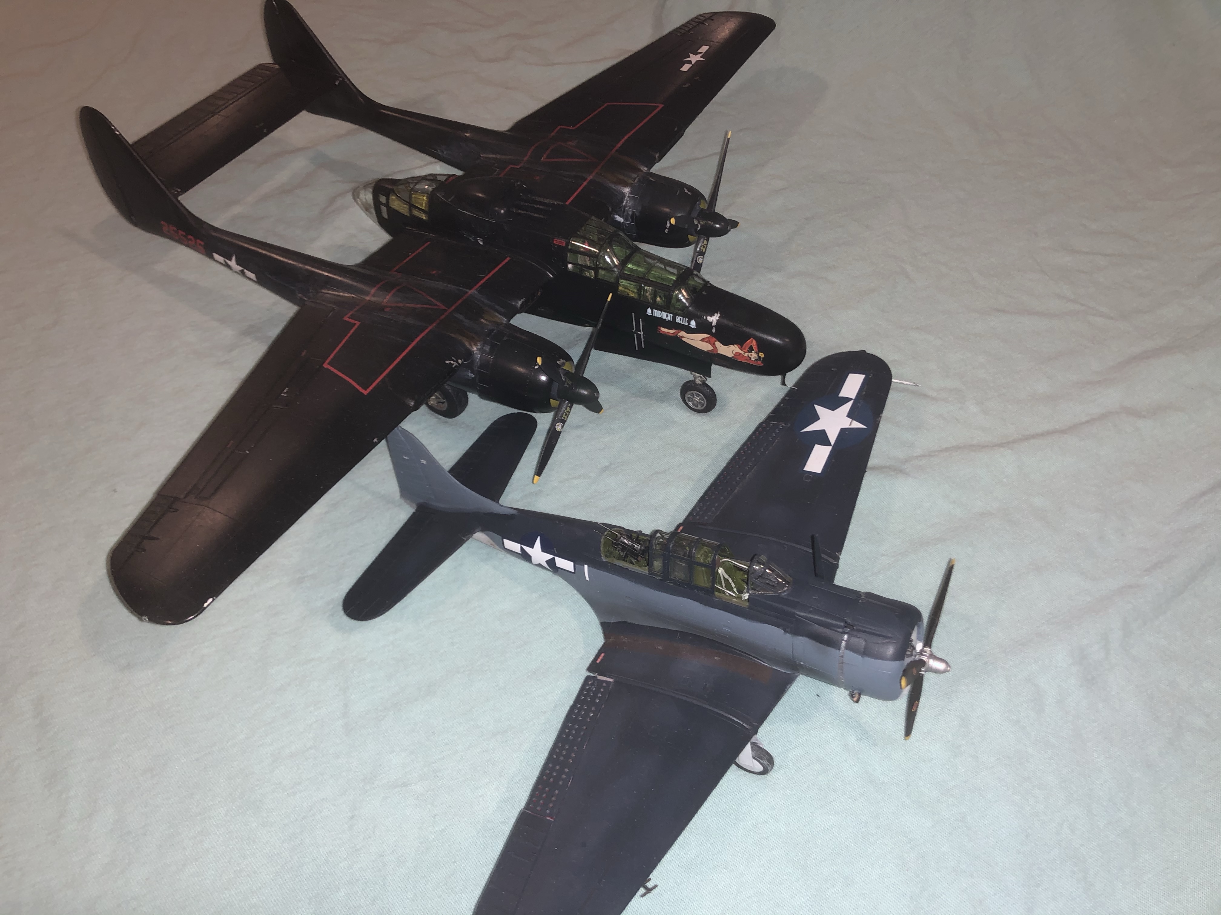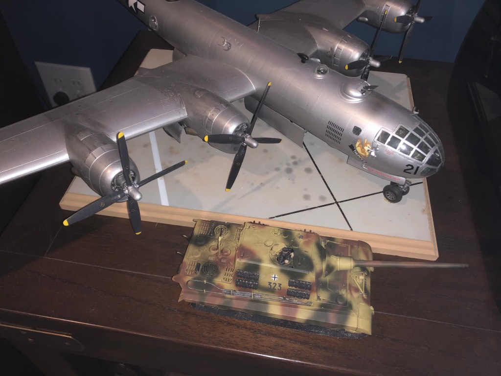 The largest and smallest kits I’ve built. Maybe not 100% true, I have bought just single figures in 1/48. But this is the most extreme scope of hardware I’ve done.The largest and smallest planes to serve on a US Navy aircraft carrier during World War II. The F3F at left had only just retired from fleet carrier service on December 7, 1941; but it continued on with fleet training units for several years. Of course the TBF was the Navy’s brand new torpedo bomber in June 1942. So these two would have overlapped in service for a couple years. Interesting, they are both Grumman products.The largest and smallest armored fighting vehicles I’ve built. Maybe not quite true, I’ve also finished a Dingo which was slightly smaller than the Universal Carrier; but the Dingo was unarmed. So the Universal Carrier and Jagdtiger are the extremes of armed AFVs. Notice the plastic cement, that’s the inevitable consequence of moving these things around!Largest fighter with smallest bomber? Not sure if that’s literally true. There are a few German night fighters that may be bigger (Ju 88, Do 217) and perhaps some smaller bombers, depending on what counts. But certainly these are the biggest and smallest I’ve built so far. I’d also mention these overlapped in service late in the Pacific War. I’ve had cause in a few wargames to have a Dauntless squadron escorted by Black Widows, the image makes me laugh.I think the Ohka is best classified as a missile. But if we call it a bomber its surely the smallest! And it could easily have wound up being chased down by the largest single engine fighter of the War! The Ohka’s usual attack profile involved gliding for some distance prior to firing its rockets as it approaches its terminal dive. So there is a legitimate period of vulnerability to conventional intercept.This is the comparison that really inspired the post, but its more biggest to biggest. The Jagdtiger weighs in at 75 tons, according to Boeing the maximum take-off weight for a Superfortress was 70 tons. So by that measure the Jagdtiger is more massive! Although I just read in Ian Toll’s “Twilight of the Gods” that when Bock’s Car took off for Nagasaki it was beyond max at 77 tons! So believe it or not, these two are about the same size?!
