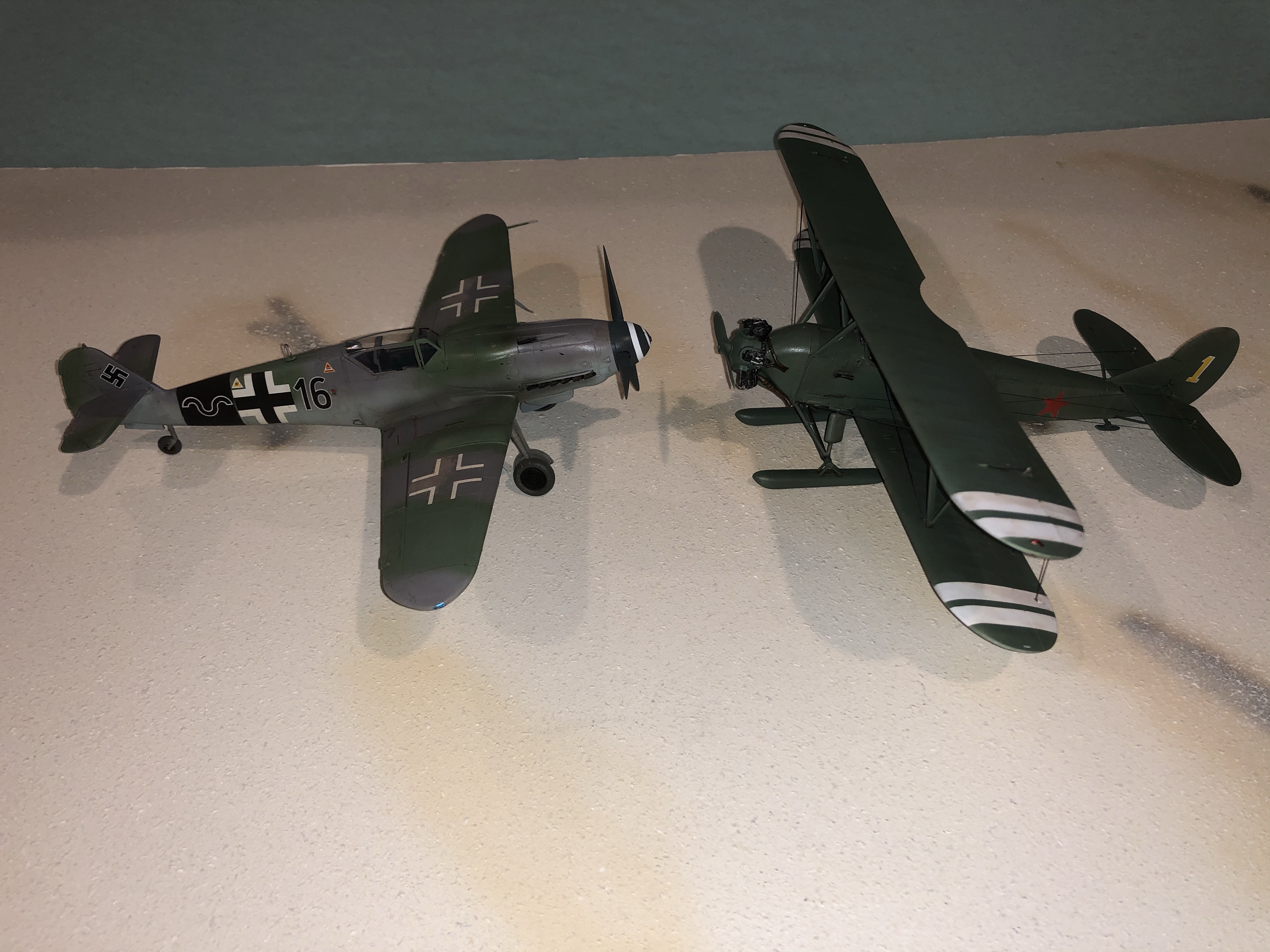But of course the big issue is rigging! I’ve been dreading this. But I’ve been wanting to develop this skill because there are a number of biplanes I want to build. I think the U-2 is the grand champion for most rigging on a WWII type, so this forced me to get some practice. I think I have a system, that may be refined some in time. But after watching several videos, and failing miserably at doing anything like *those* guys (!) I’ve figured out how to attach EZ Line (a thin and very elastic line made for this purpose) with tweezers, thin CA glue, and a Q-Tip soaked in CA Accelerator. It would obviously all work better if I had three (or more) hands. And I still have to be careful to only photograph from the “good” angles! I still skipped a few lines, especially around the landing gear. I couldn’t figure out where some of them attached! As is often the case, I’m more interested in suggesting the mass of lines than I am in being completely accurate. So I hope I succeeded. But this was a very slow process, I generally did four or six lines (always trying to work symmetrically) before leaving things to thoroughly dry. All told, rigging added at least a week to the build. I wouldn’t quite say I look forward to doing more of this, but it doesn’t quite hold the utter terror it used to either.