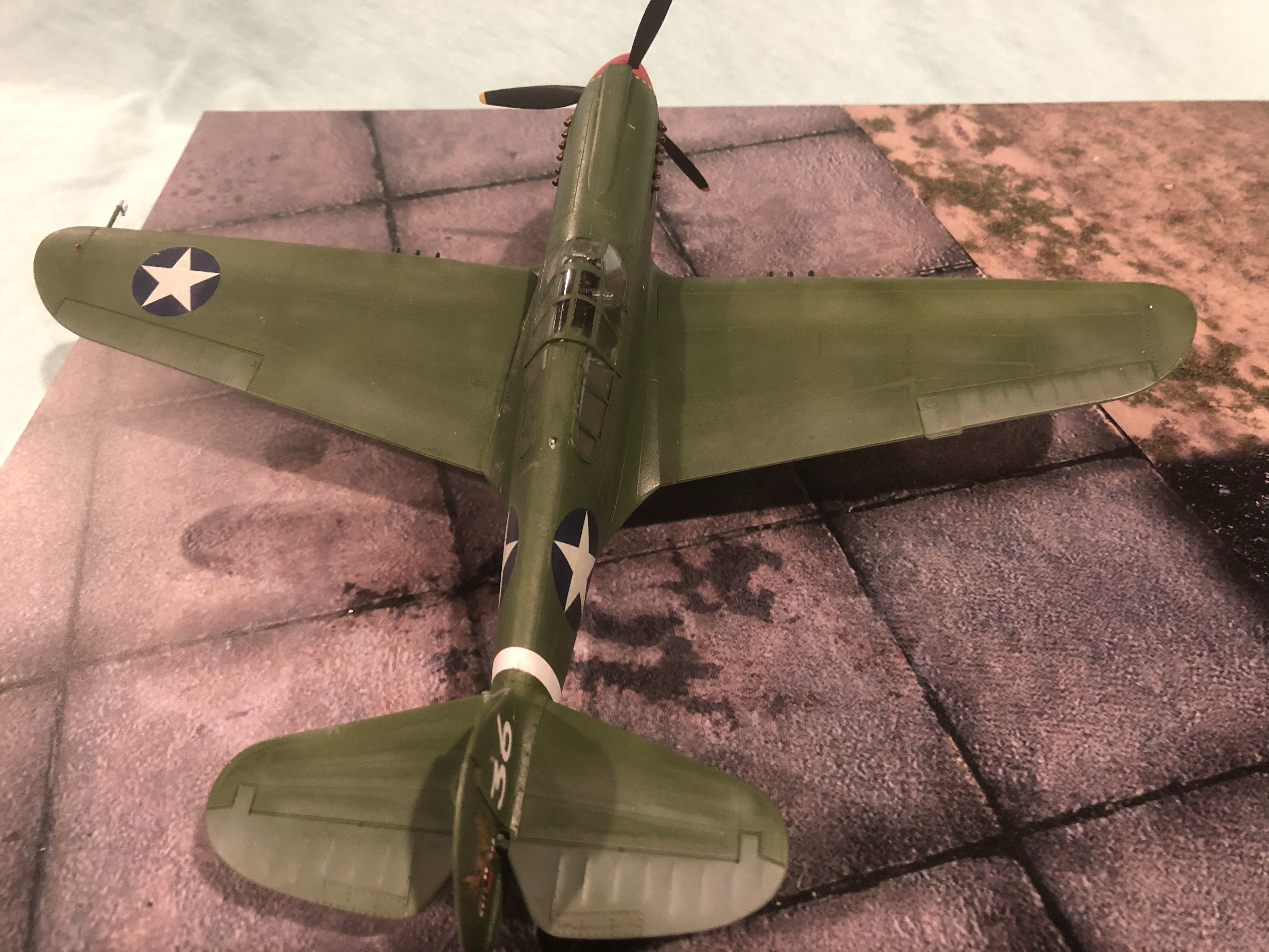 Total numbers are hard to arrive at, but my best source claims in five months of combat at Darwin the 49th Fighter Group lost four pilots in combat, and suffered another eight dead through all sorts of accidents. They lost 19 aircraft, but they also shot down 19 aircraft. That’s a 1:1 kill ratio, but with enough “buts” added on to make it an impressive accomplishment. I think their effectiveness is a testament to good leadership and using the Warhawk’s strengths wisely. The accident rate may be a reflection of inexperience and a newness to the whole sort of operation for the Army Air Force. Also between the Warhawk’s solid construction and fighting over friendly territory many pilots survived the loss of their aircraft.