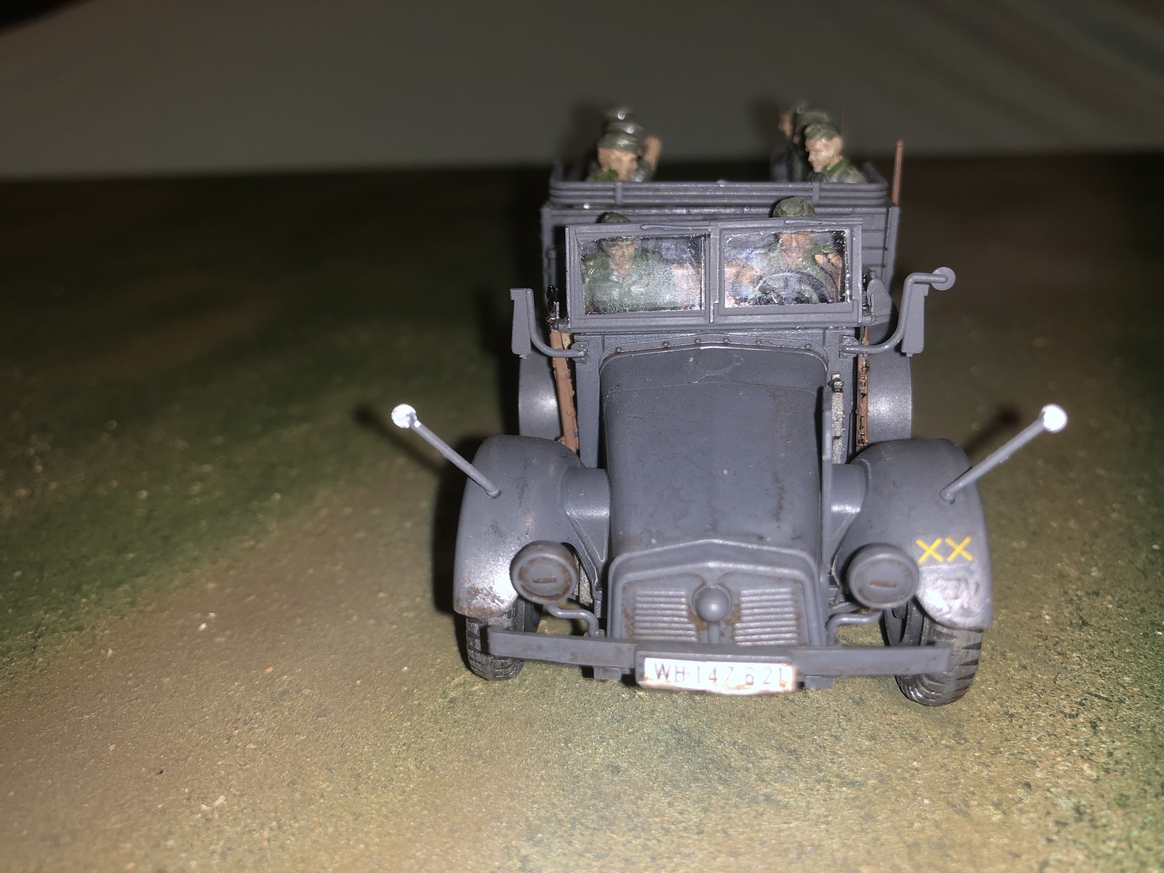 This particular vehicle could be either a Model 43 or 143. It was used by the 4th Sniper Regiment of the 6th Panzer Division during the summer of 1941, Operation Barbarossa.