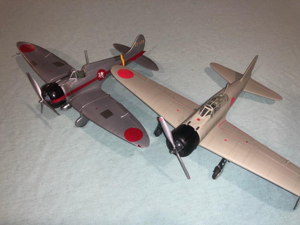 The A6M1 prototype with a production A6M2. Apart from the bigger engine, there are changes to the tail and all control surfaces.