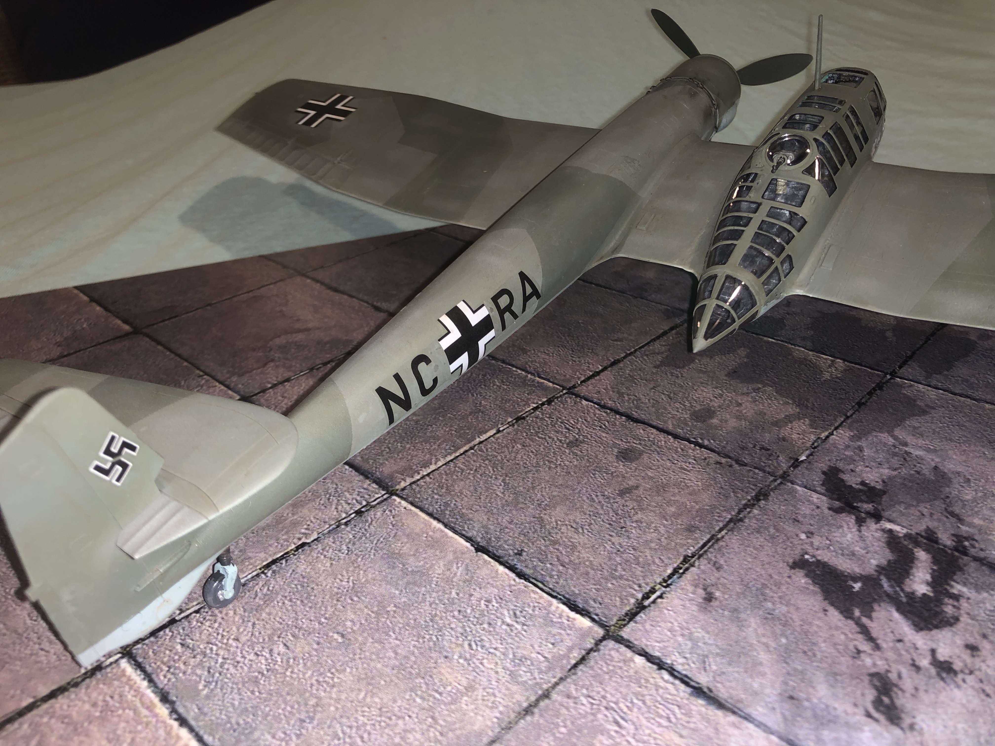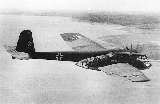 The four initial prototypes and 5 “A” model pre-production aircraft used a BMW 132 engine with around 900 hp. It carried four light machine guns; two fixed forward and two flexible mounted for rear defense, and could carry up four SC 50 bombs ( a little over 100 pounds each). In spite of its lop-sided looks it was aerodynamically well balanced and had no particular handling vices.