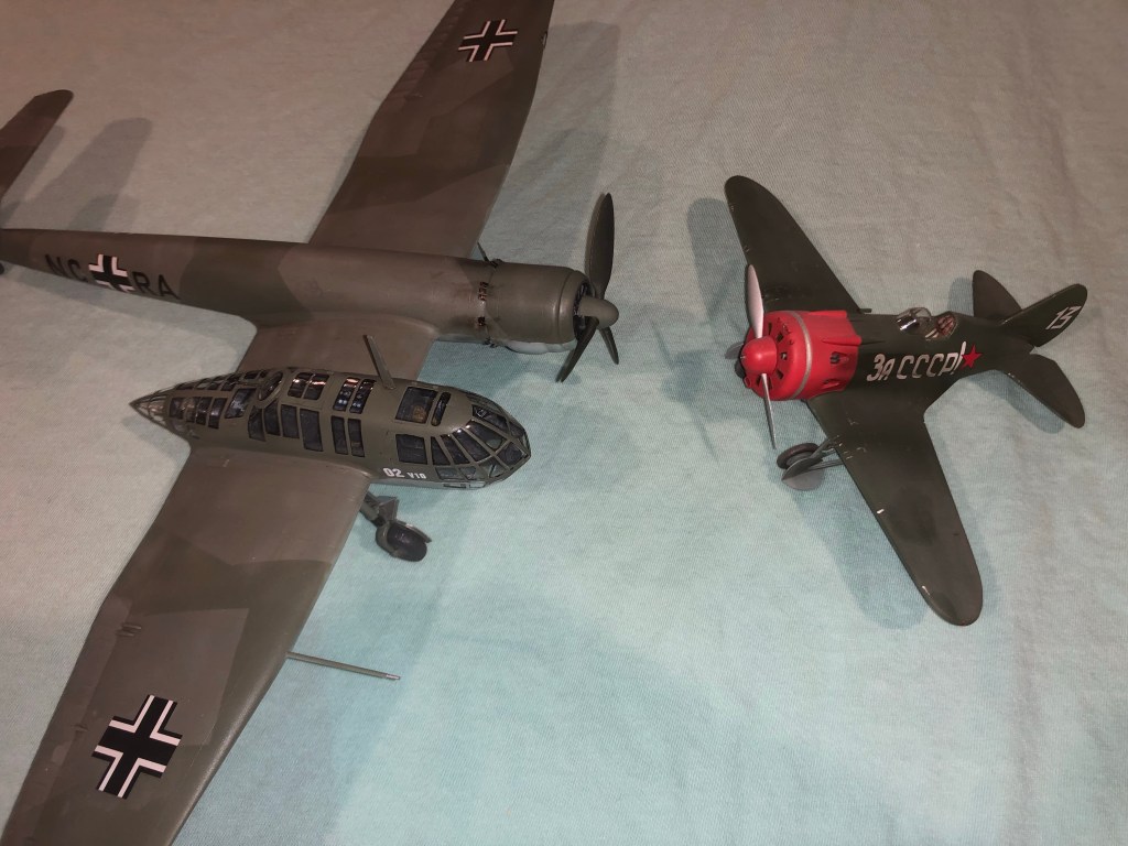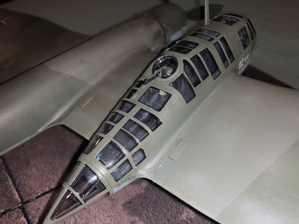 This particular aircraft is the second BV 141B-0 pre-production aircraft (like a “Y” prototype in US terminology). It is a well documented machine, there can be no doubt it was finished! It is the Hobbyboss kit. A surprisingly easy build for such an odd type! The gondola has two major clear parts that make most of the exterior you see. So much clear surface area did cause me some concern, as I’ve mentioned before clear can be difficult attach because you want to avoid everything except white glue (any sort of fumes can cause fogging or crazing on the clear surface). Not only did this have two large clear pieces to glue together, but you also want a strong join where the gondola attaches to the wing. Well first of all the fit here was pretty good, so I didn’t need to do much shaping, filling or sanding. Then I used some small drops of CA glue for strengthening once the parts were somewhat secure in place. It all worked out pretty well.