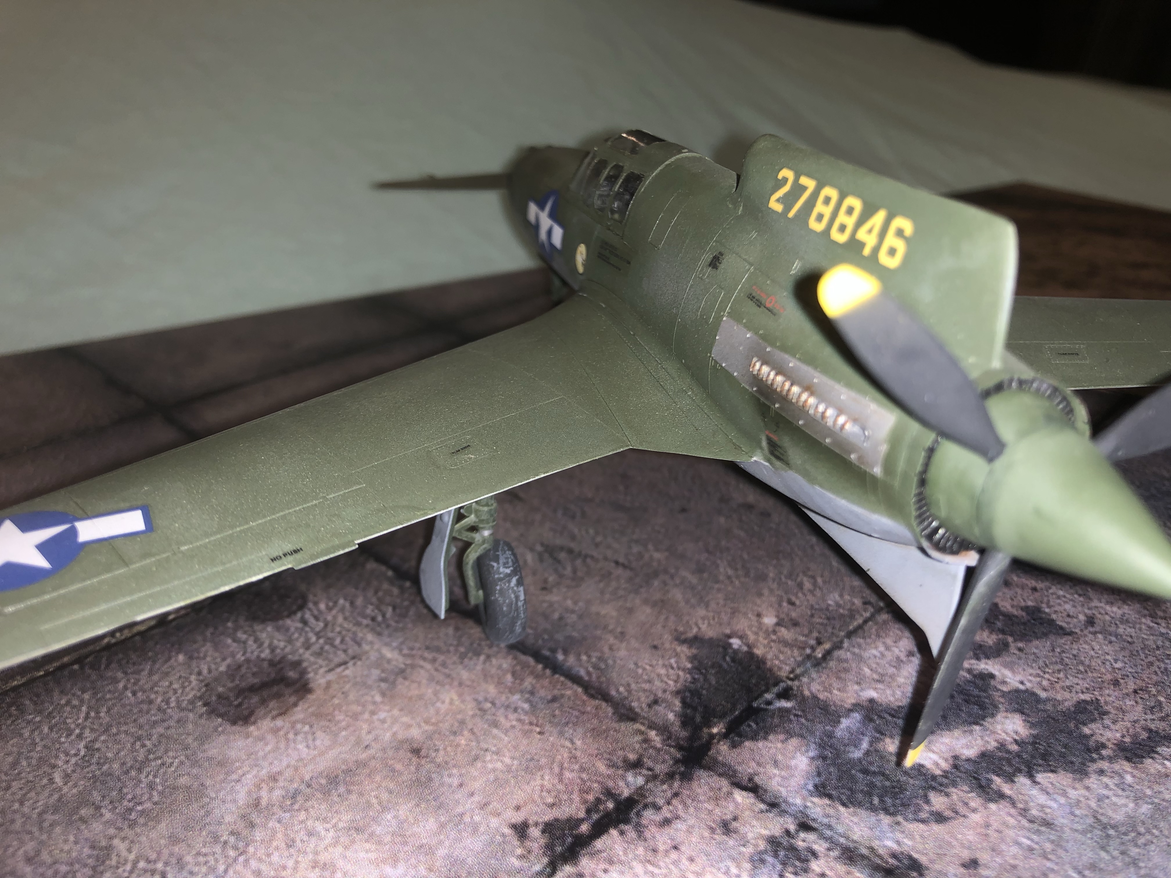The third prototype was delivered armed with four M2 .50 machine guns. Its extended wingtips were further modified with “trailerons”, this was basically a repeater for the ailerons on the main part of the wing to further improve roll performance. It was thought this may have finally fixed the roll stability, and the second prototype was modified along similar lines. On May 27, 1945 the third prototype crashed at an air show at Wright Field in Dayton, Ohio. It happened during a low pass with a P-38 Lightning and P-51 Mustang. The pilot, William C Glasgow decided to try a slow roll during the low pass. He, along with four civilians on the ground were killed.