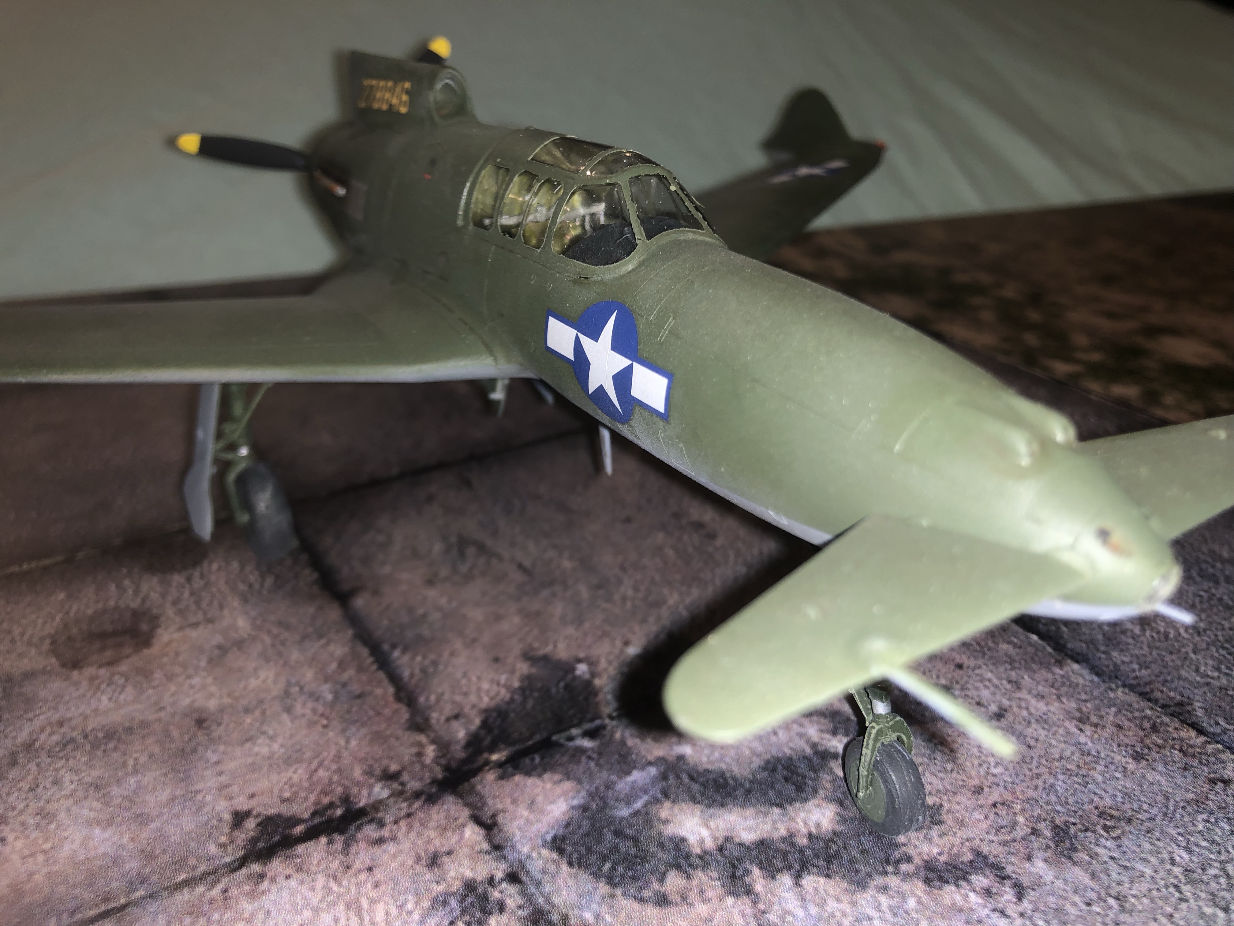 That switch may represent the point at which the AAF gave up on the project as an actual production aircraft. Certainly by the time the first XP-55 prototype flew on July 13, 1943 it was expected to be a pure experimental type. Data was sought for the swept wing, the configuration overall. It could be directly compared with other aircraft using the same powerplant (especially early P-51).