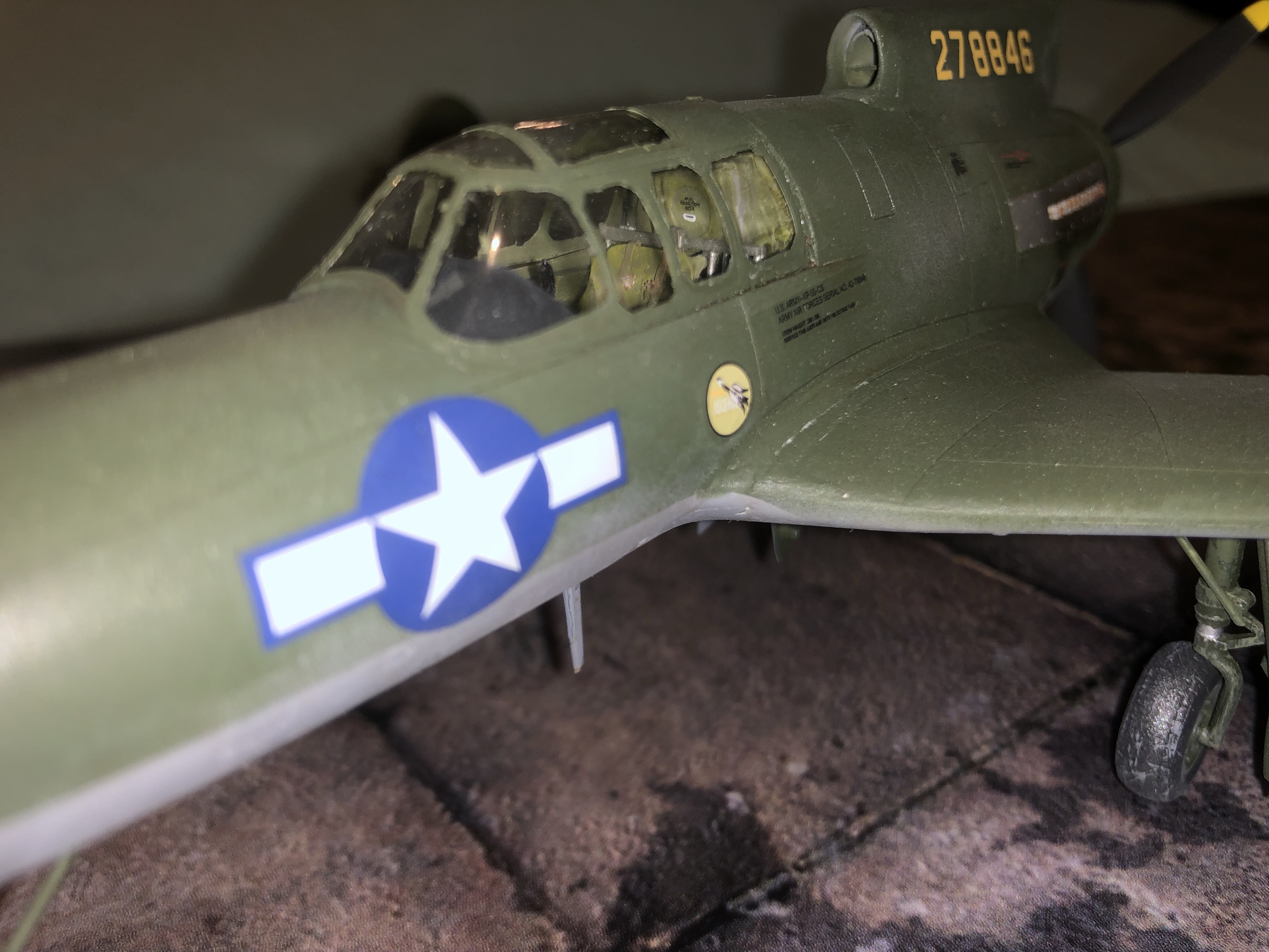 This is the second prototype. I had to do some extra research as this type is much less well documented than most of what I build. In particular, I wanted to do the second aircraft because I’ve seen that one. I know right where its sitting! The kit included decals for it. But the kit also has the final form of the wingtips, and I couldn’t find it in writing if it was ever modified that way (I did in fact find that information much later). I wound up using the very helpful post and photo albums at Jeff Groves excellent Inch High Guy website. The pictures of the actual aircraft settled all questions that the aircraft did indeed have the enlarged wingtips with trailerons.