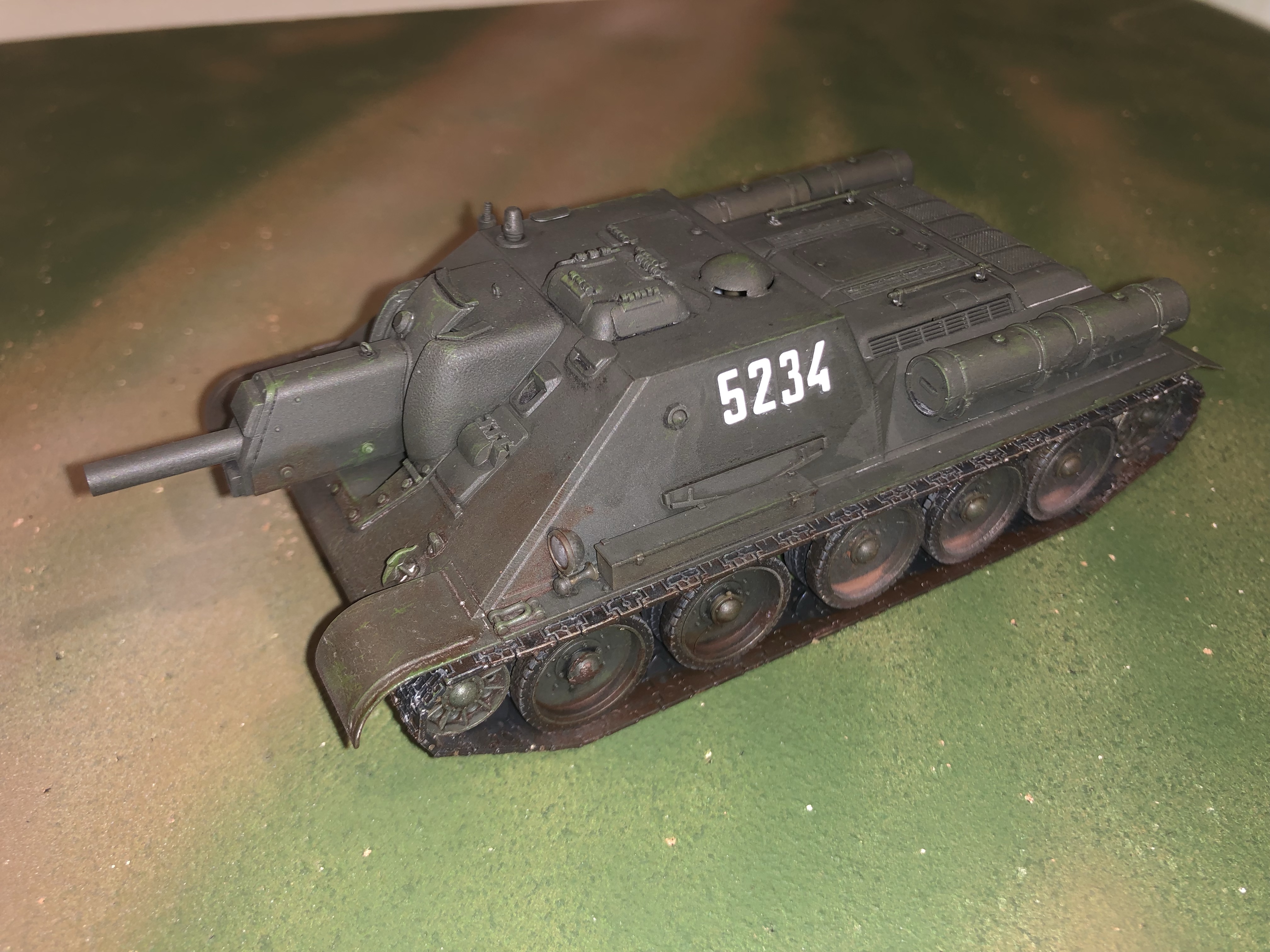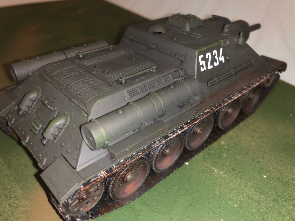 I definitely built one of these in 1/35th around the same time I did a Stug as part of a pair. As good as the T-34 was as the basic chassis even the early turrets lacked a basket making the crew scramble over ammo boxes and spent shells to operate the tank. There was just something the Soviet’s never quite got about crew-friendly tanks. Even the massive JS series were cramped for the crews to operate in. Another example of one army trying to duplicate the successful weapons of the enemy (even the highly regarded AK-47 is basically a knock off of the Sturm-44 German assault rifle).
