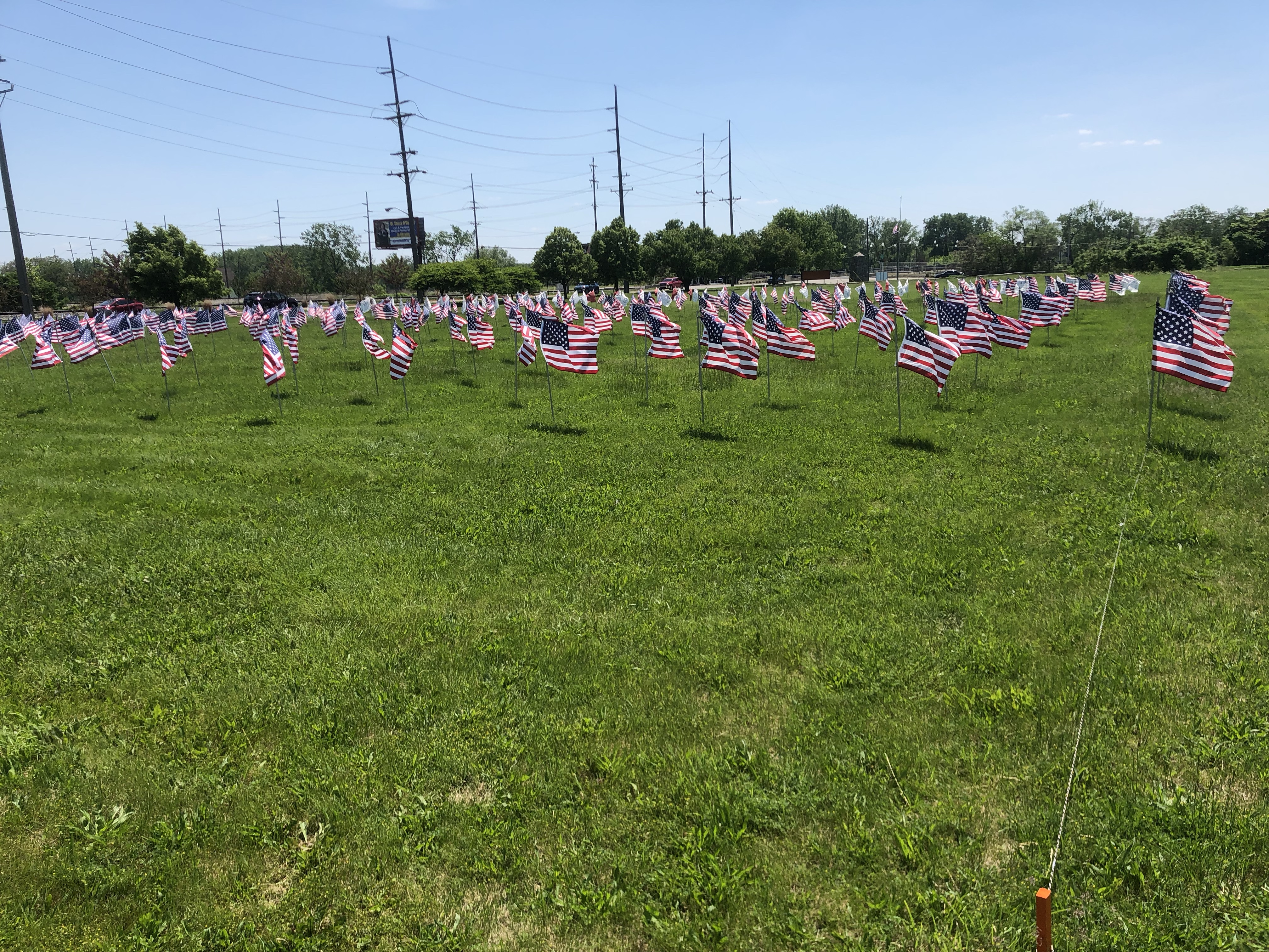 The battlefield is small, and really right in town. There’s not a lot to see, except for a Memorial Field set up with flags to honor those fallen. A half mile walking trail with markers for points of interest, circles the main battlefield. The River Raisin borders the area about 100 yards south.