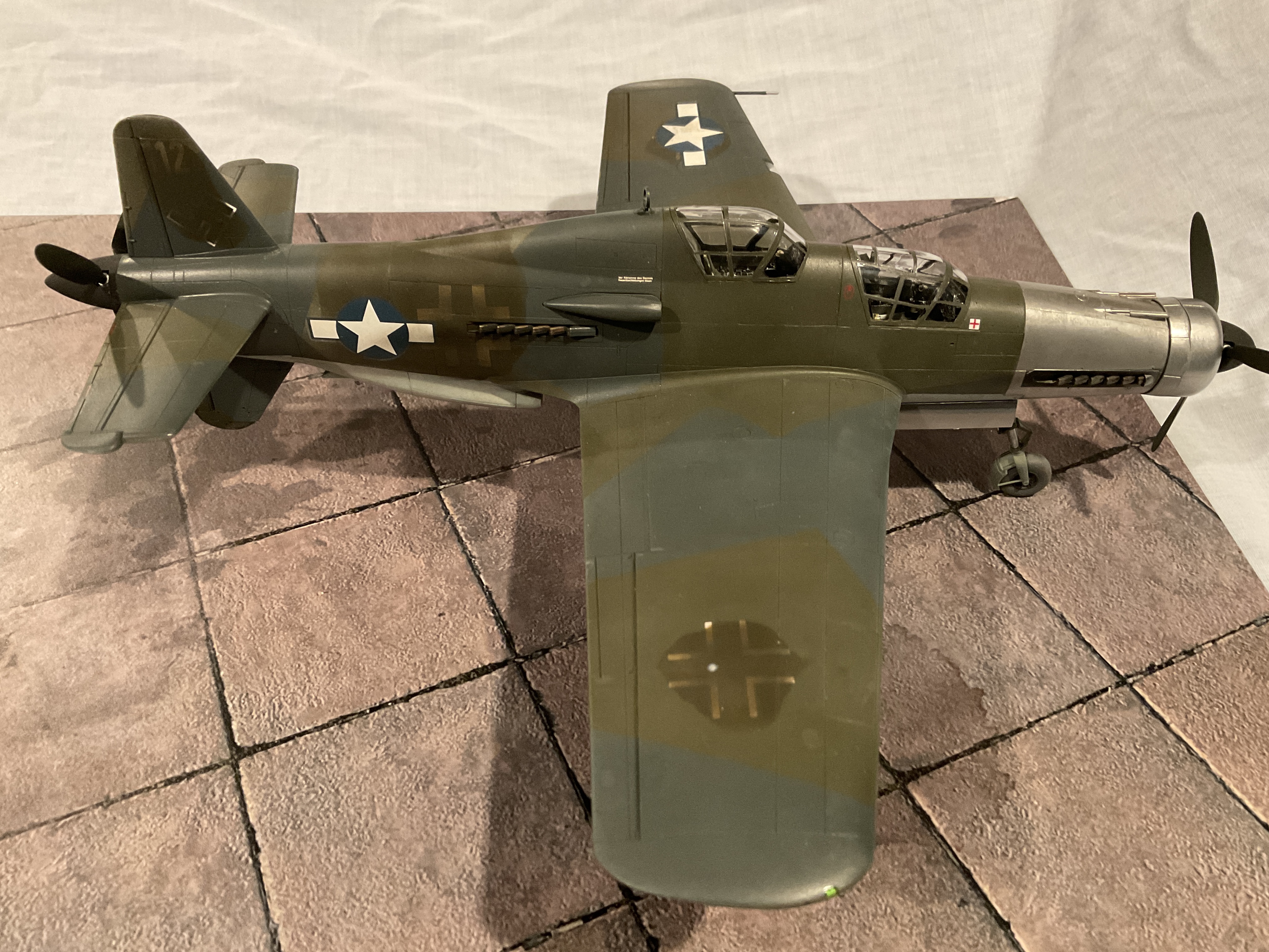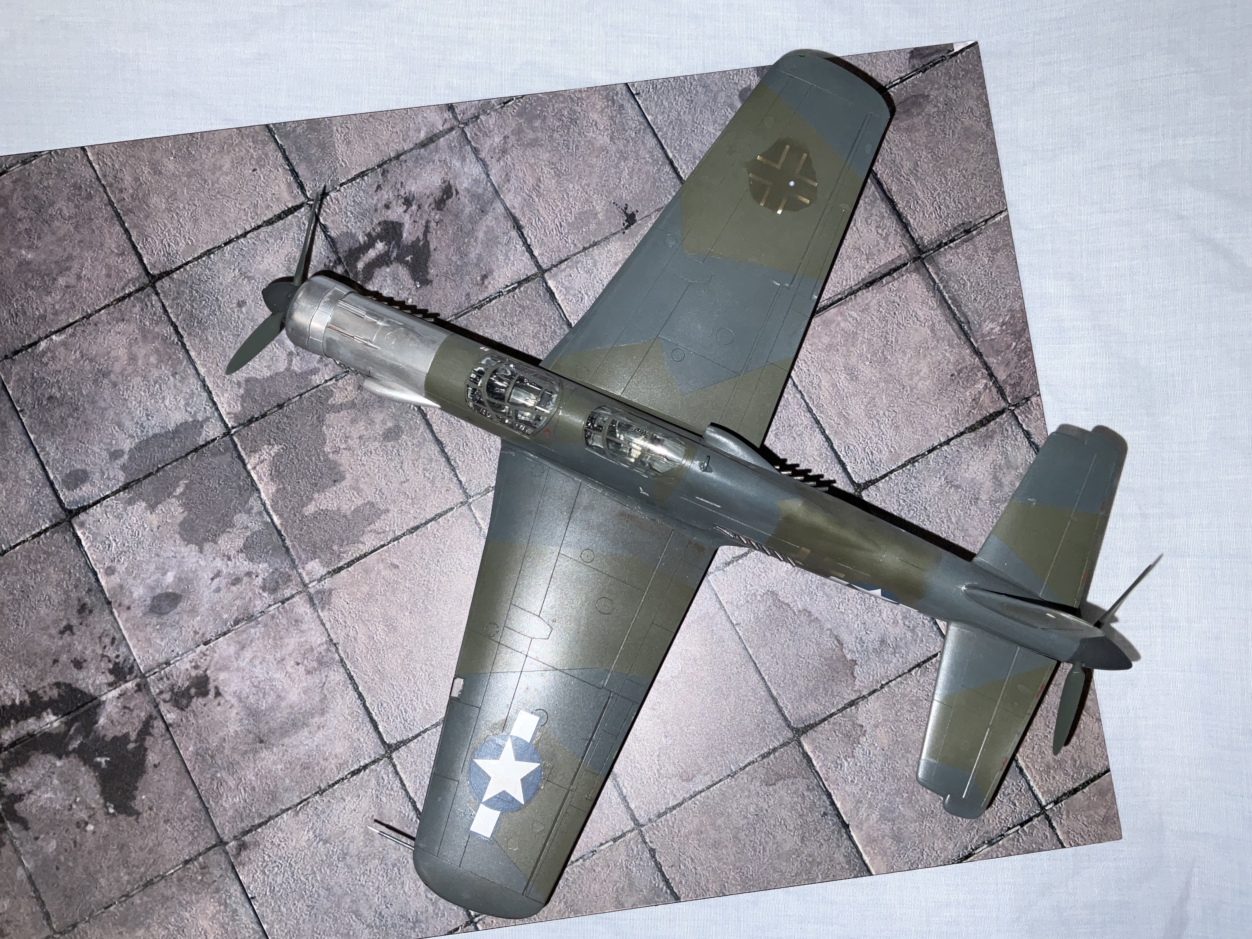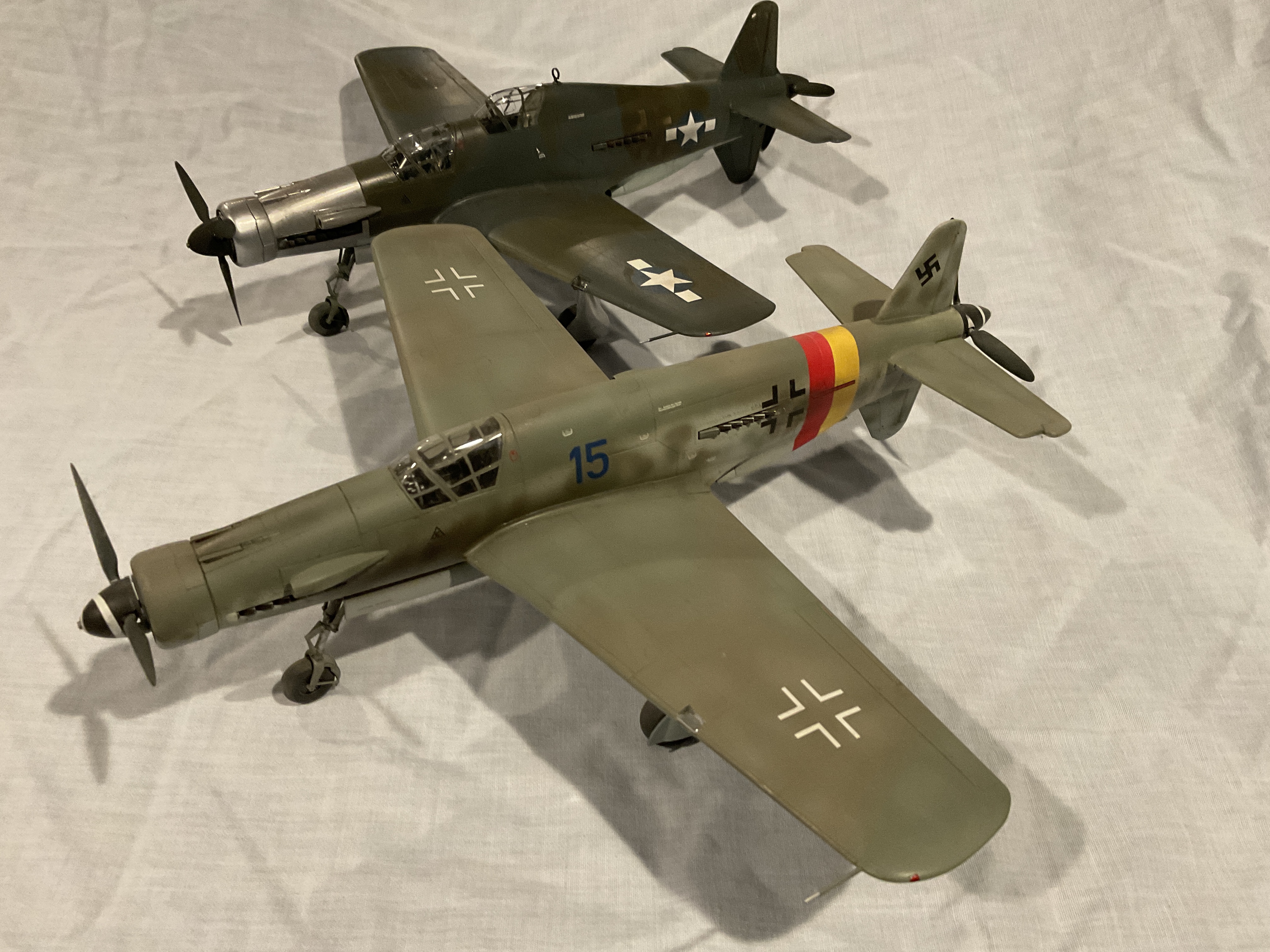 This is the Tamiya kit with Cutting Edge decals. The paint scheme was fun, after building and painting it as Do 335 WkNo 240112 (“112” on the tail), I painted out the German markings with Olive Drab and Neutral Grey as to let the markings faintly show through.