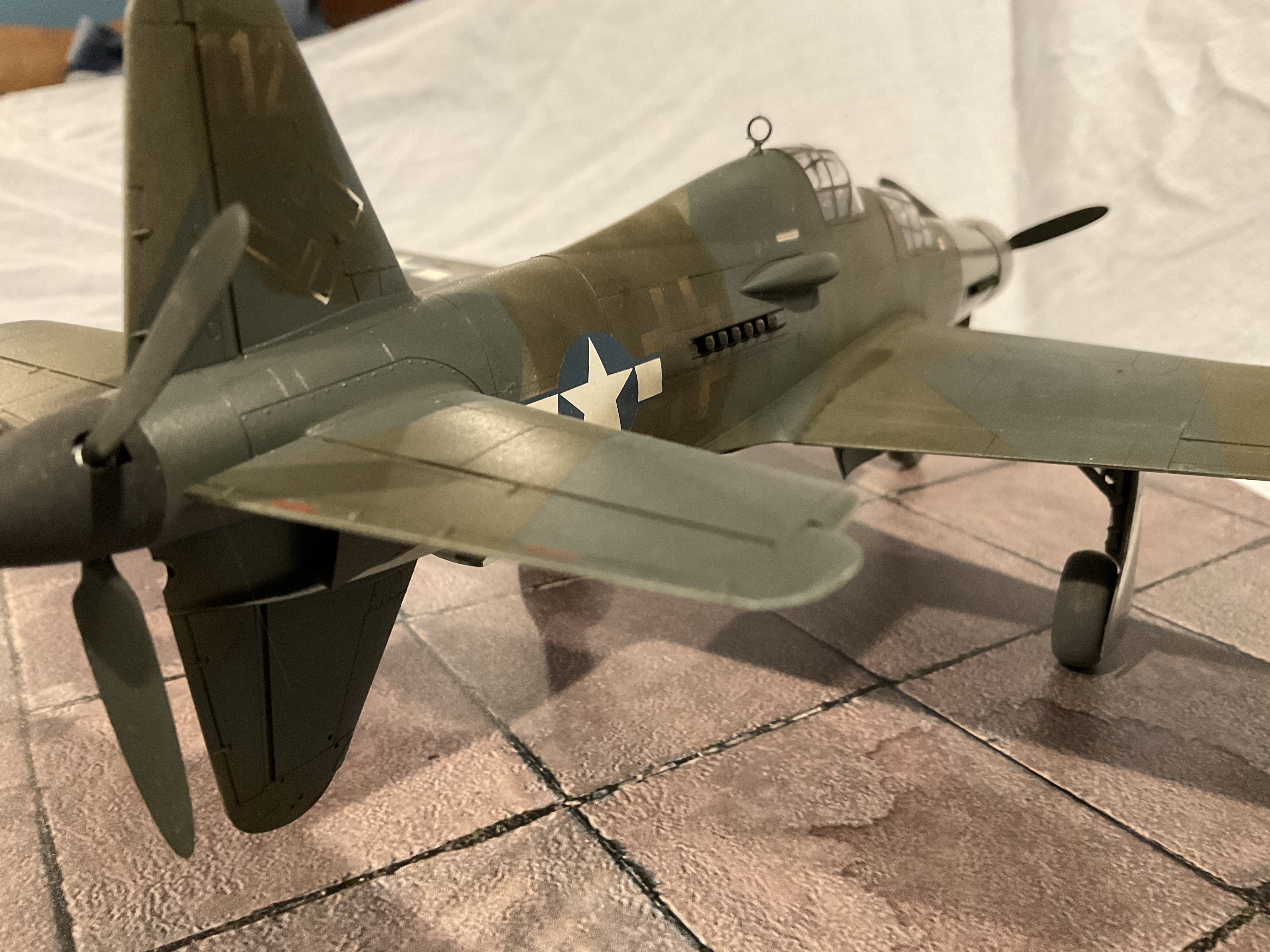 I did have one unpleasant discovery, readers may recall a couple years ago I speculated if the oil washes I usually used caused some damage to an Alclad II metal finish. Well I can definitely say yes to that. After putting a burnt umber wash on the almost done airplane I grabbed a tissue to wipe off some of the excess, and it wiped clean down to bare plastic on some of the “natural metal” undersurfaces. That really did surprise me, since I’ve long used oil based paints at that point precisely because they are so neutral towards most other finishes. In this case, it wasn’t a big deal to just repaint the bare plastic. But we’ll call that a big lessen learned!