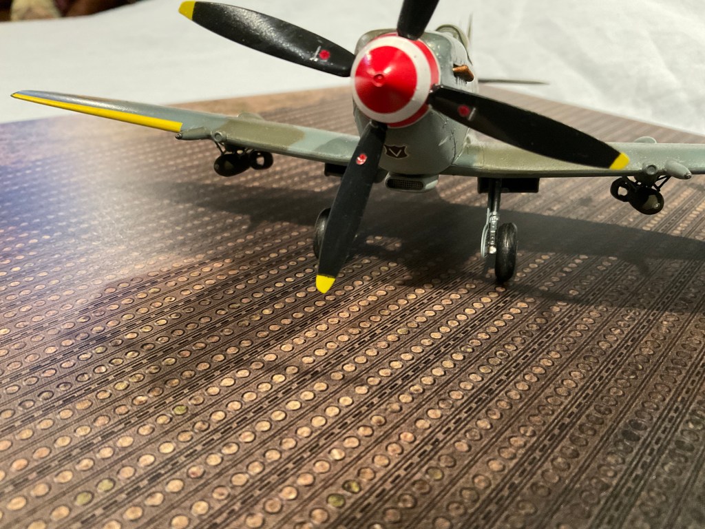 As mentioned in my previous, more detailed Mk XVI post, all (most? My usual Spitfire production qualifier applies. “all” should always be read as “as far as I know”!) of this Mark were delivered with clipped wingtips. But clipped, standard or extended was an easy switch often done in the field. So that previous Mk XVI had standard tips swapped in, here I am finally showing one with the more common clipped tips. This provides a slight boost of speed (less drag) and improved rate of roll; but slightly reduced overall maneuverability. Generally, the clipped tips were considered most desirable for low altitude work.
