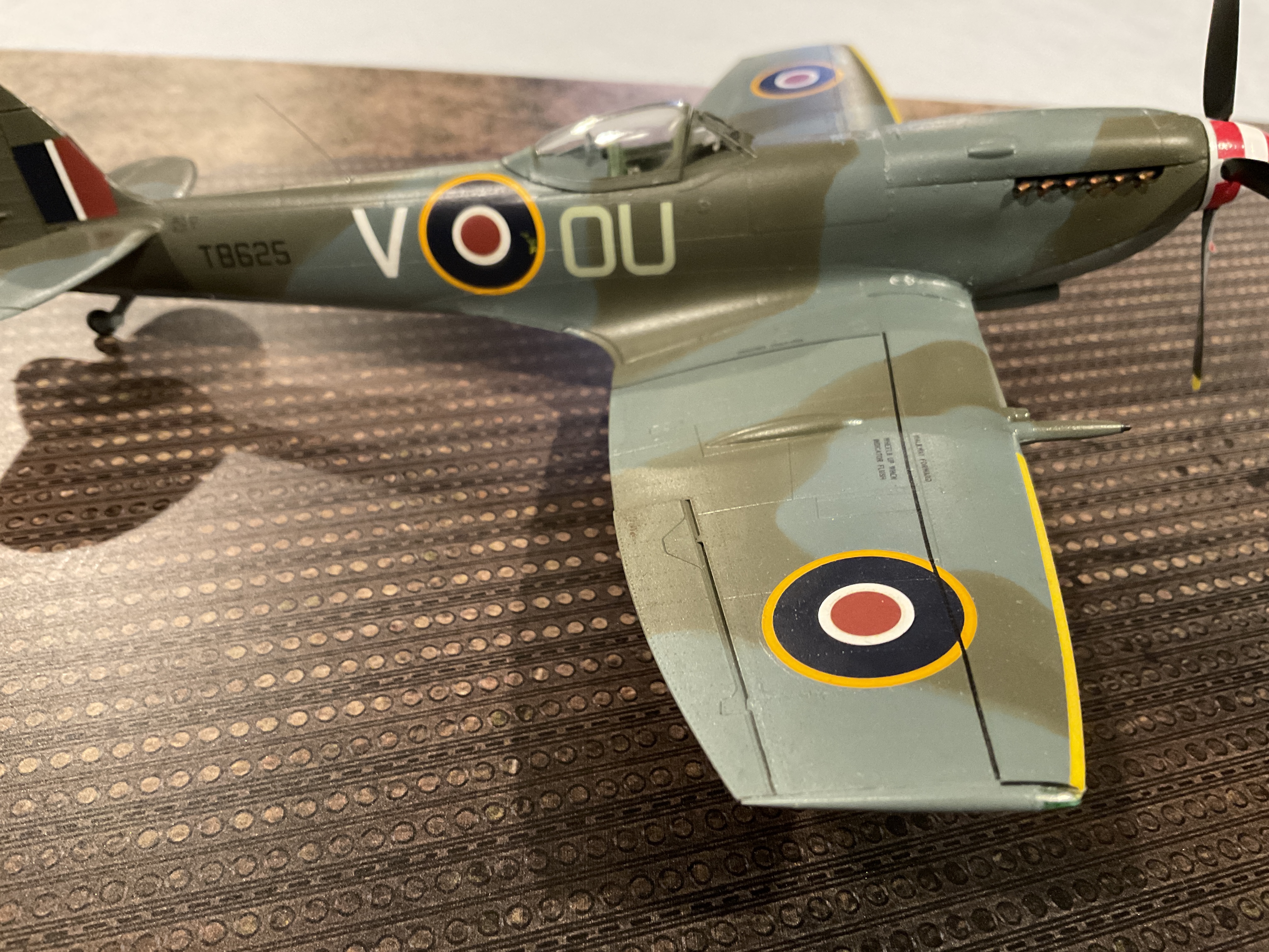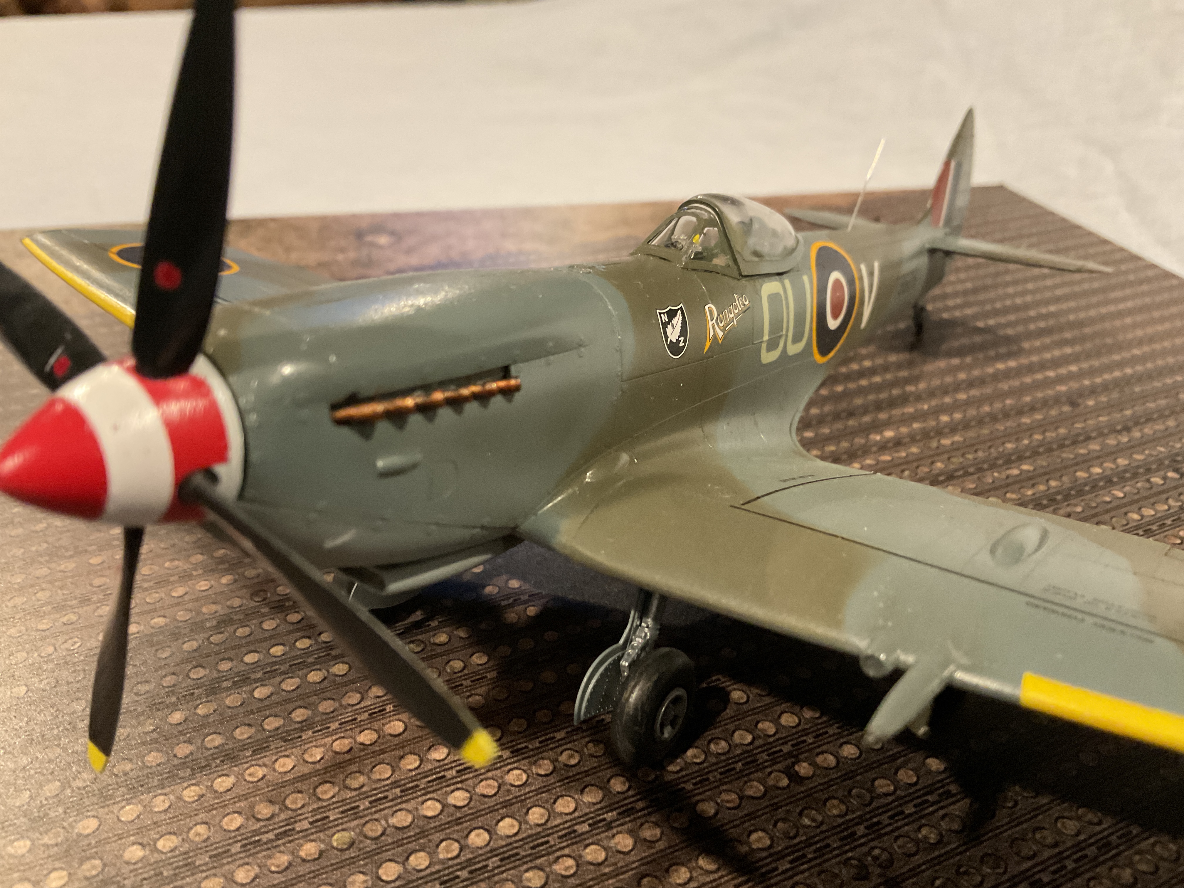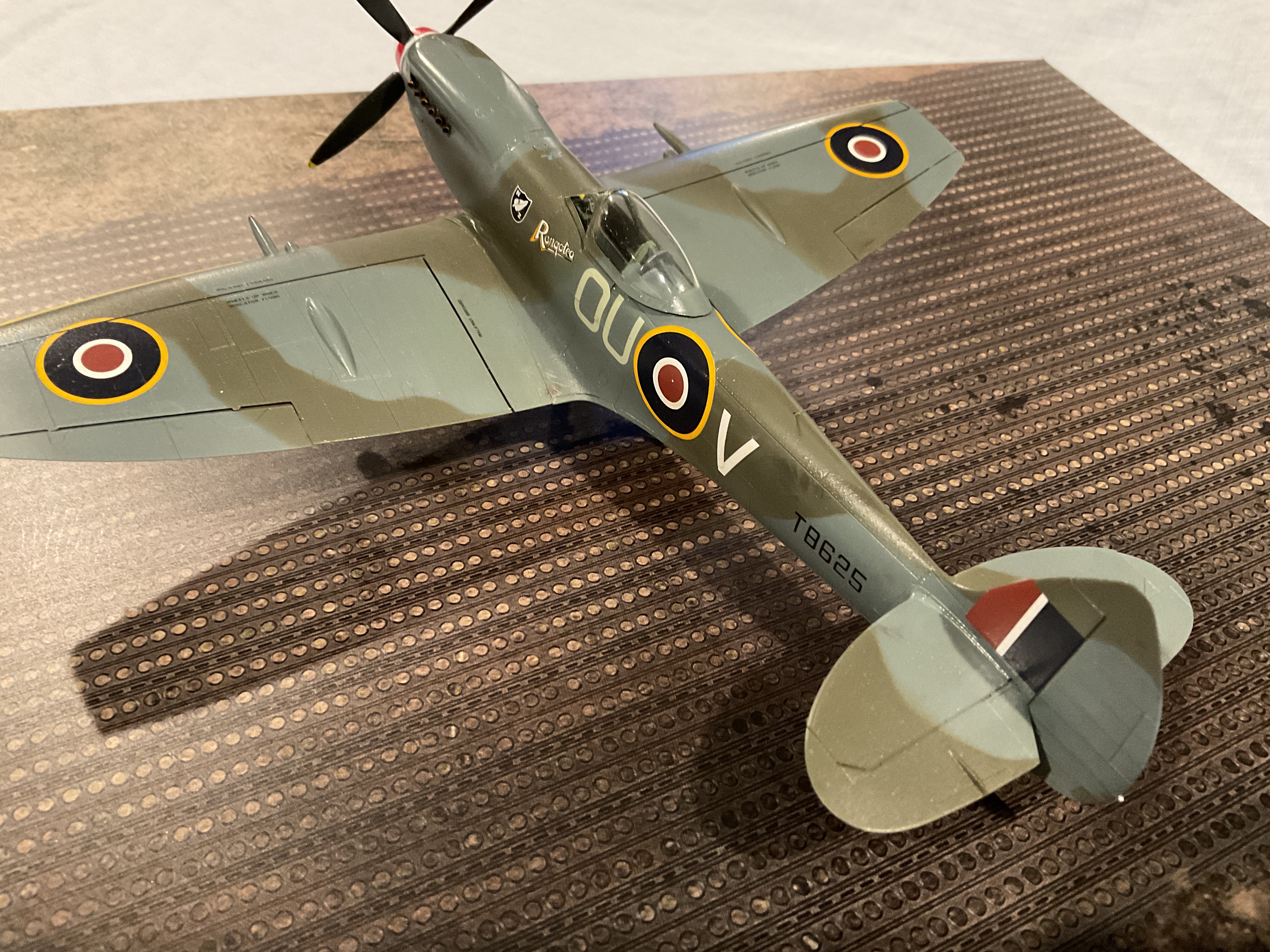 This particular aircraft was attached to 485 (New Zealand) Squadron. Organizationally this was an offshoot of the “Empire Air Training Scheme”, an agreement reached between Britain, Canada, Australia and New Zealand in December 1939. Under this plan, training schools established in all these locations would feed pilots into Great Britain. Those students would then be organized into squadrons by nationality, that were nominally a part of their home armed forces but were under the command and control of the RAF for the duration of the War in Europe. I’ve seen this squadron simply listed as a RNZAF Squadron. But at least for the duration of hostilities, it was a little more complex than that!