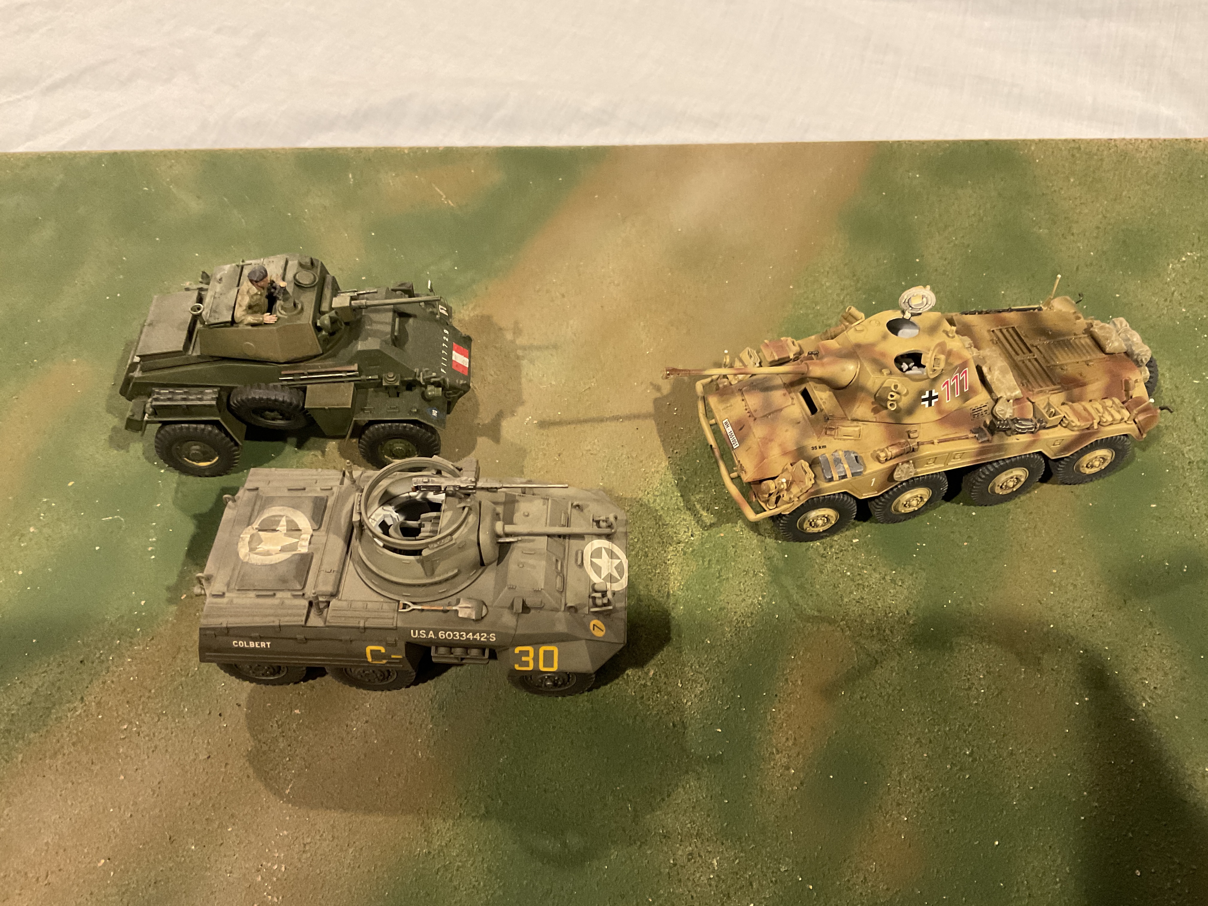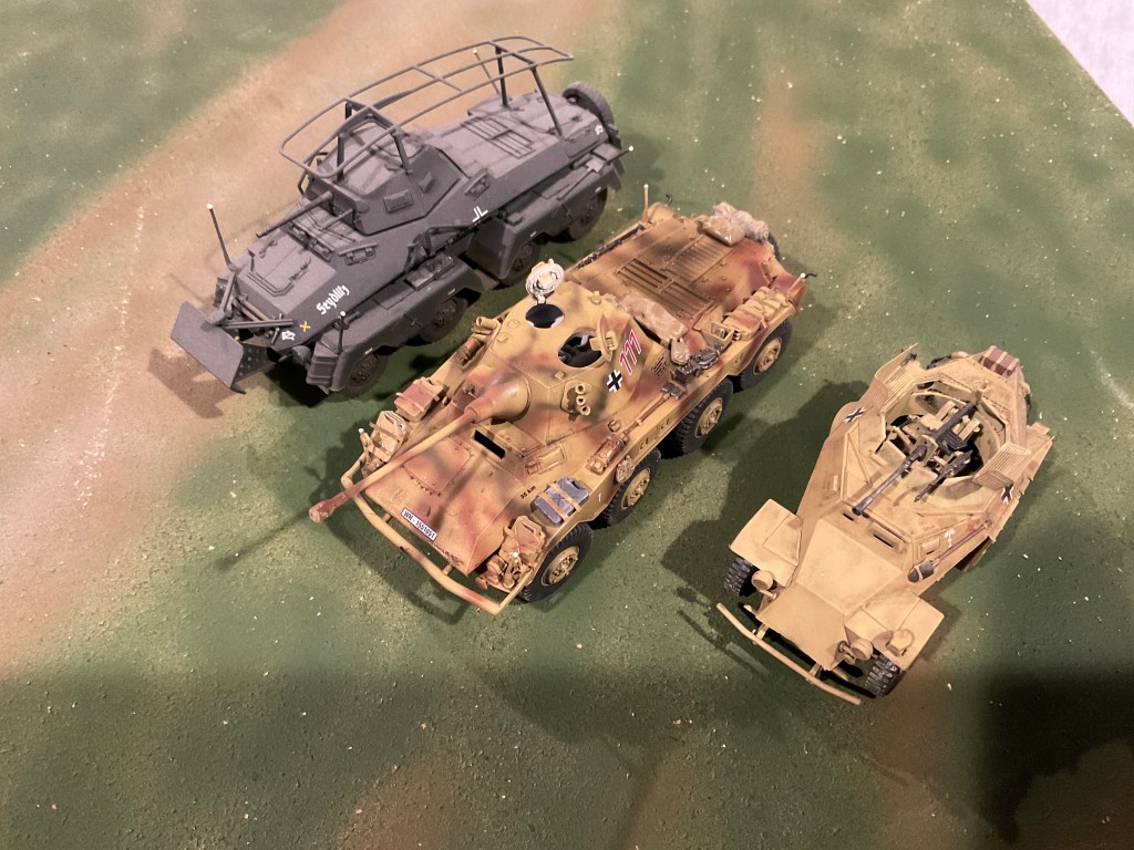 My family of German armored cars. The Sd.Kfz.232 (command version of the 231) was the standard “heavy” at the start of the War, the Sd.Kfz.222 at right is a more normal sized vehicle in wide service.