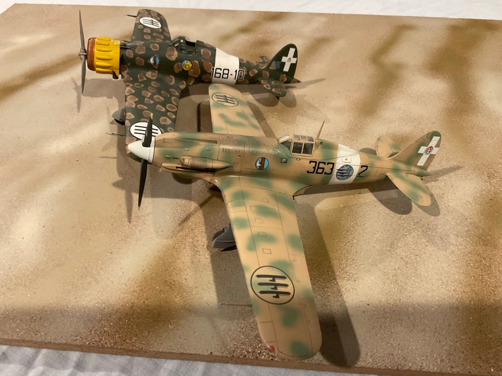 The MC.200 with two regular opponents. It was more than capable enough against the Gladiator, and roughly equal to the Hurricane Mk I. Unfortunately, Hurricane was improved to a Mk II which a clear edge over it.