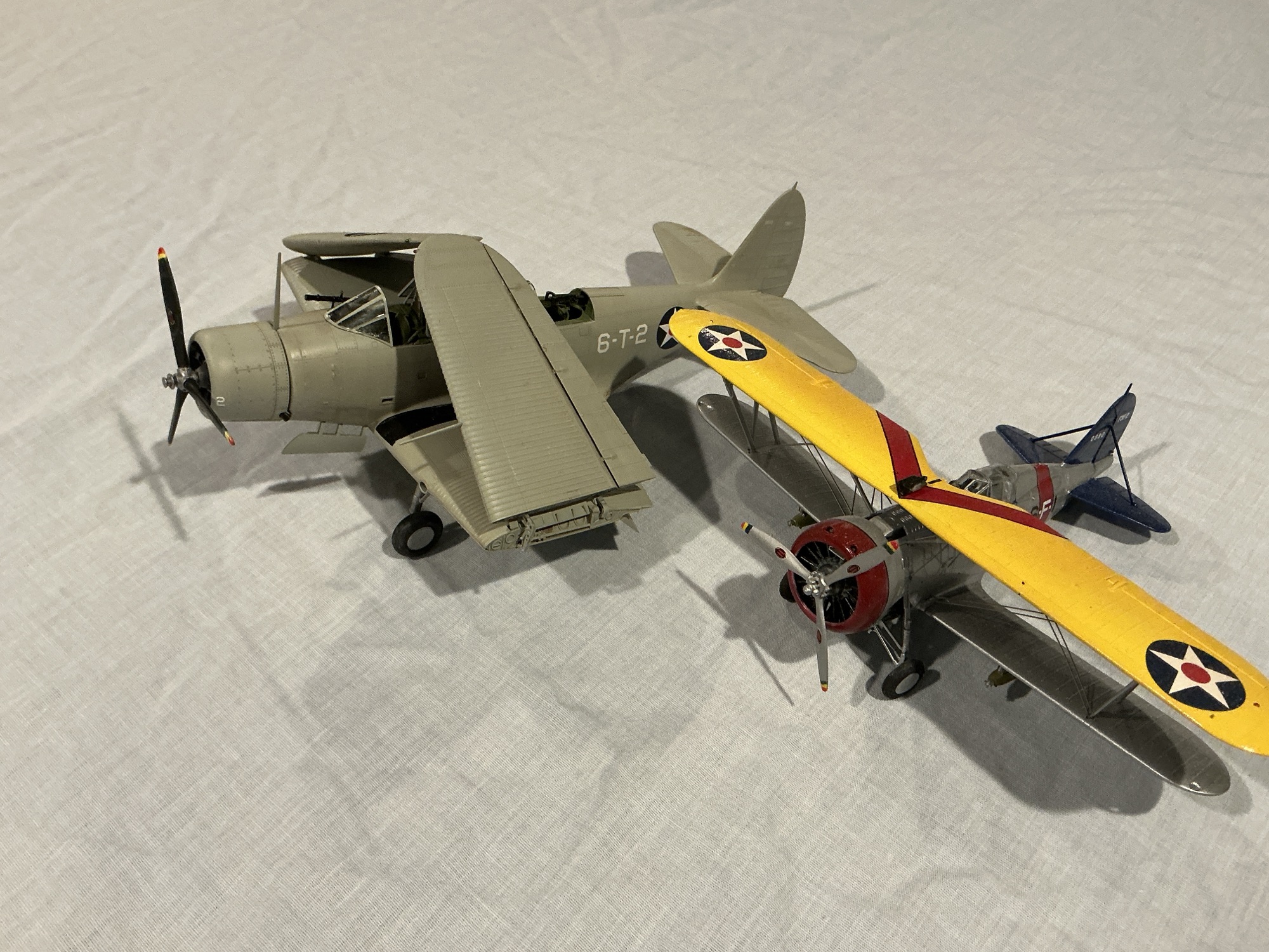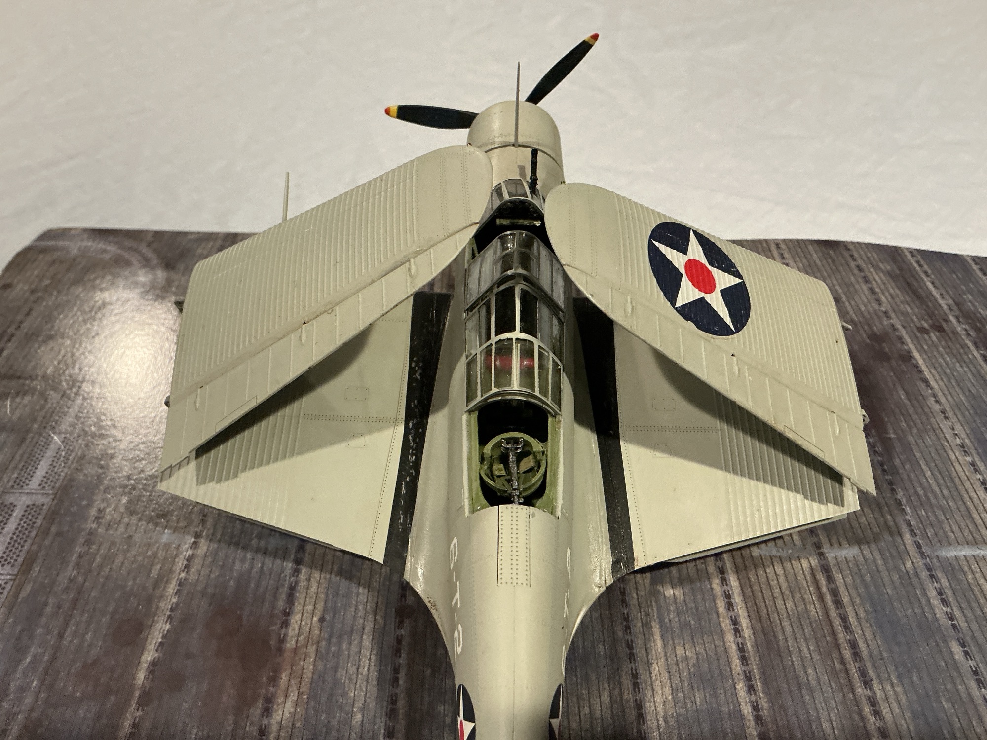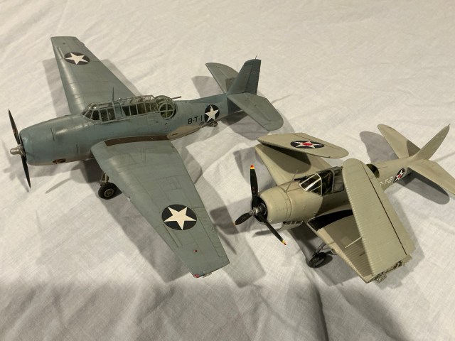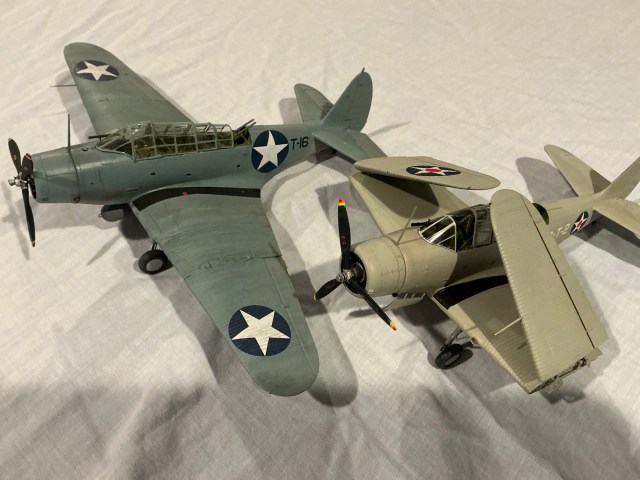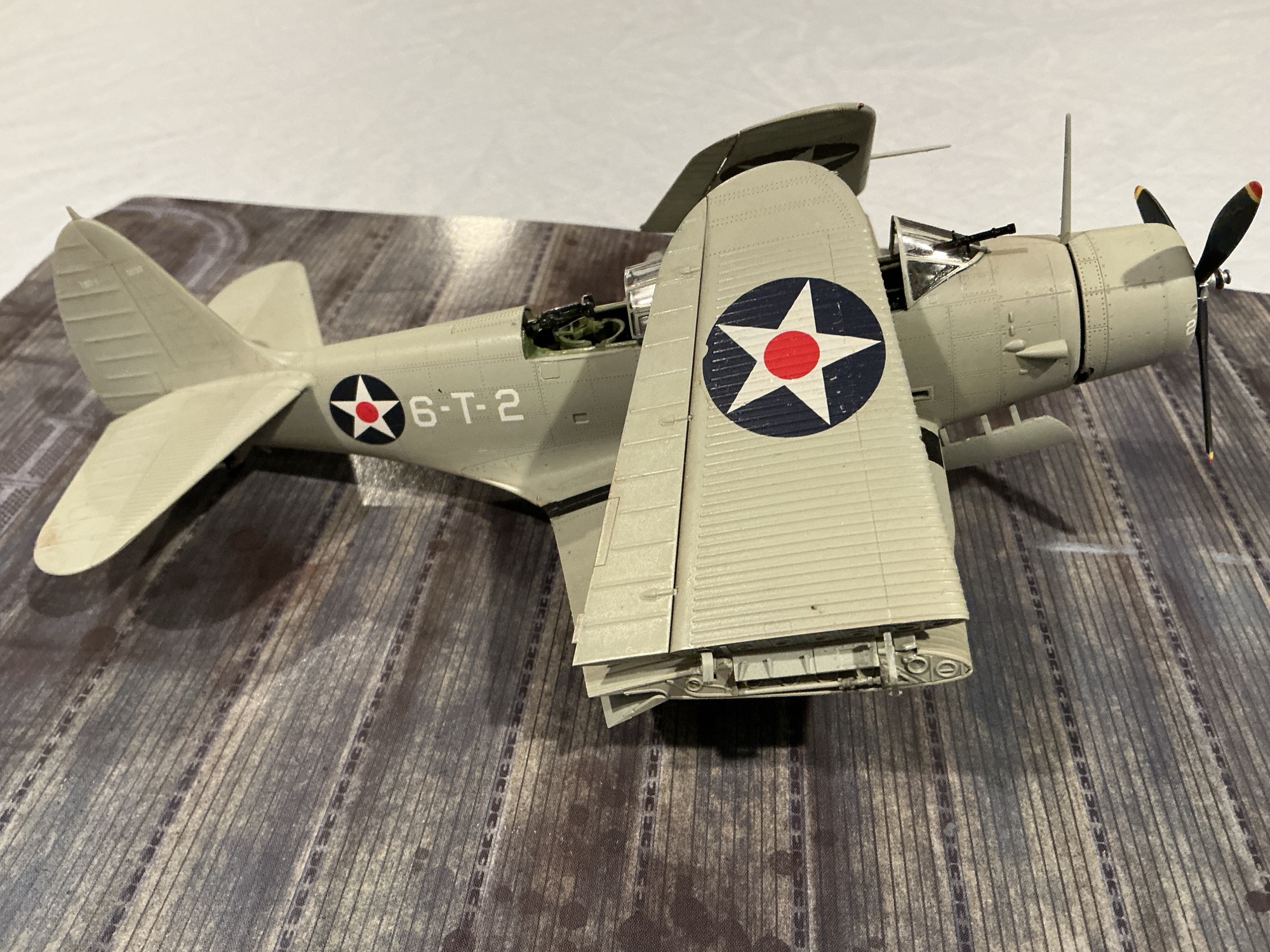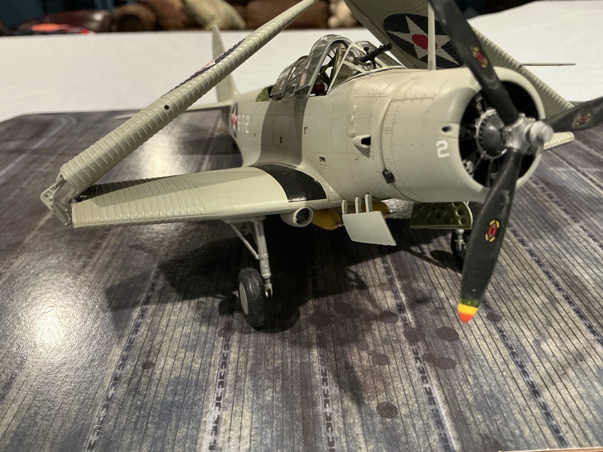 This is the Hobbyboss kit. That Chinese company has a hit or miss record on quality, the Devastator is one of their better regarded kits. It nicely captures the shape of the plane, although it is less detailed than the slightly older Great Wall kit. It was not a hard build. I thought this was a good time to show a Devastator folded up and opened up. The folded wings were by far the hardest part of the build.