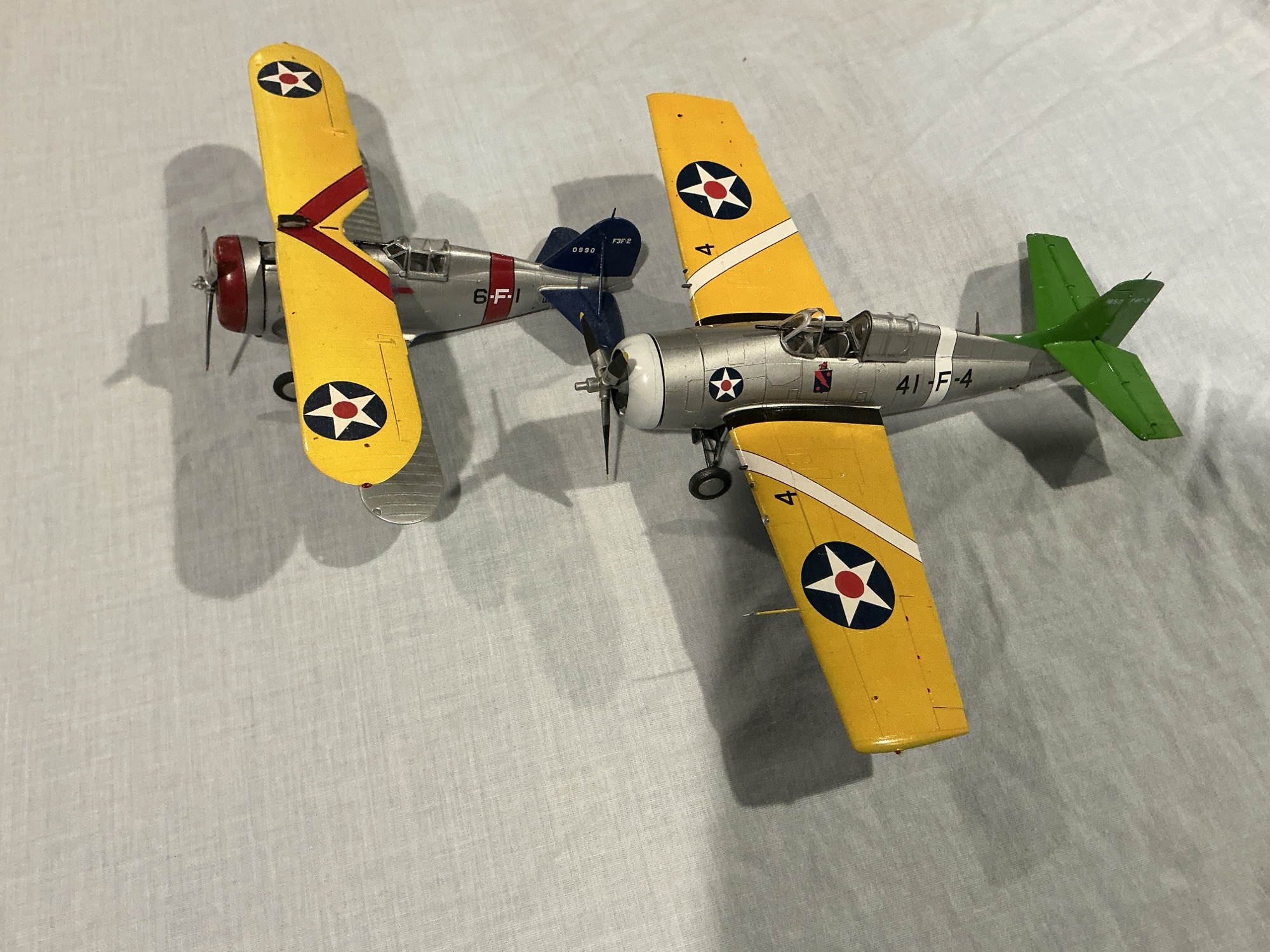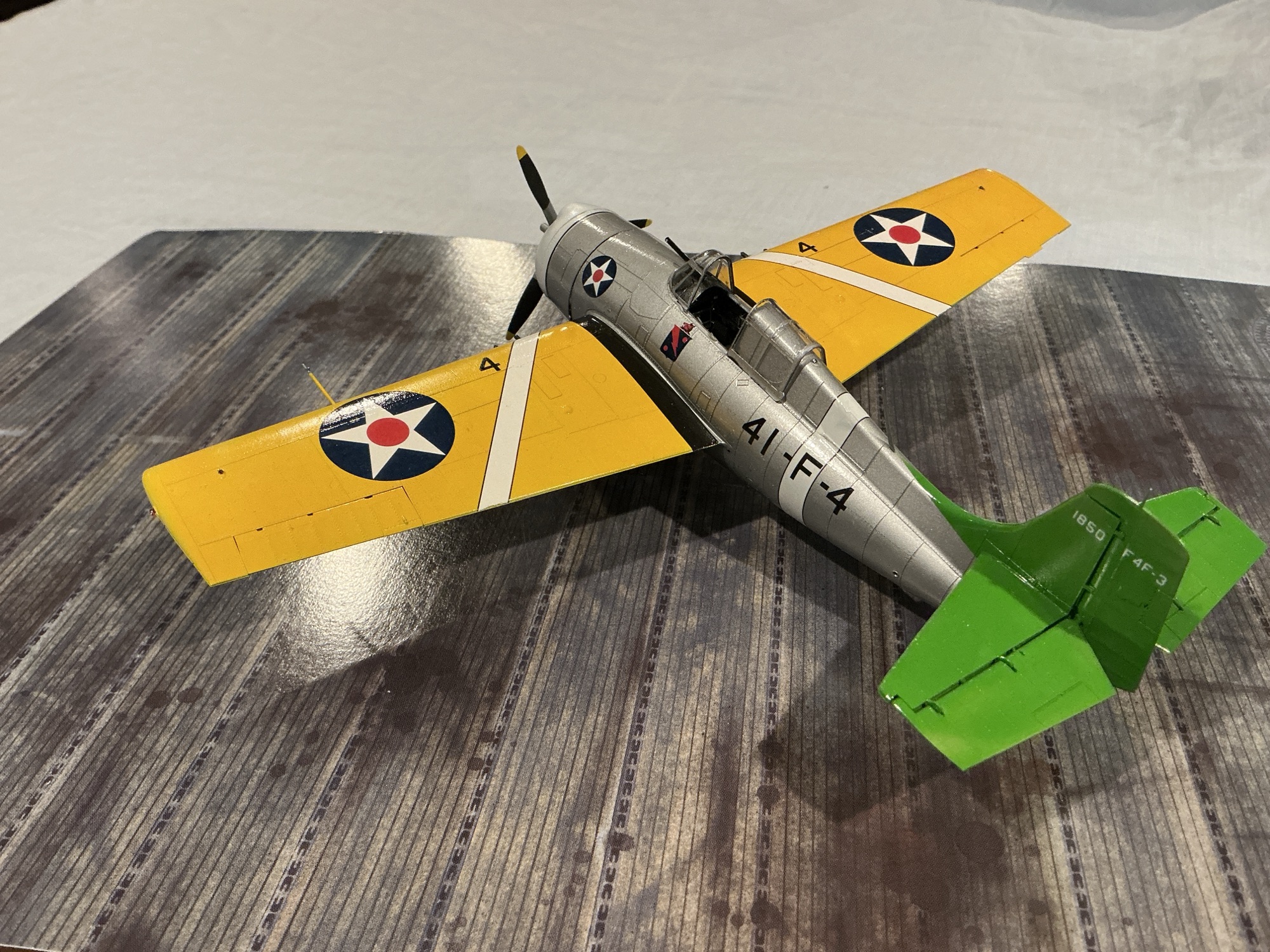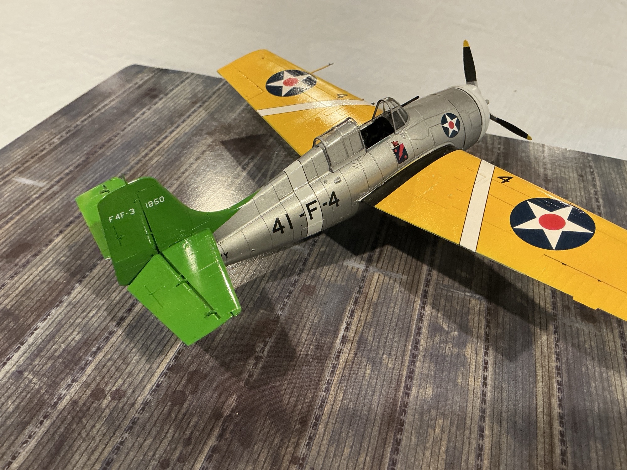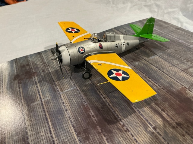 The first 49 examples of the new Wildcat were delivered in the Yellow Wings markings. This would be quickly superseded by the new overall grey scheme, but the first two full squadrons to re-equip with Wildcats wore the Yellow Wings, if only briefly. These would be VF-41 on the USS Ranger (Green Tail) and VF-71 on the Wasp (Black Tail). Both of these were the Atlantic Fleet carriers, convenient with Grumman being a New York company.