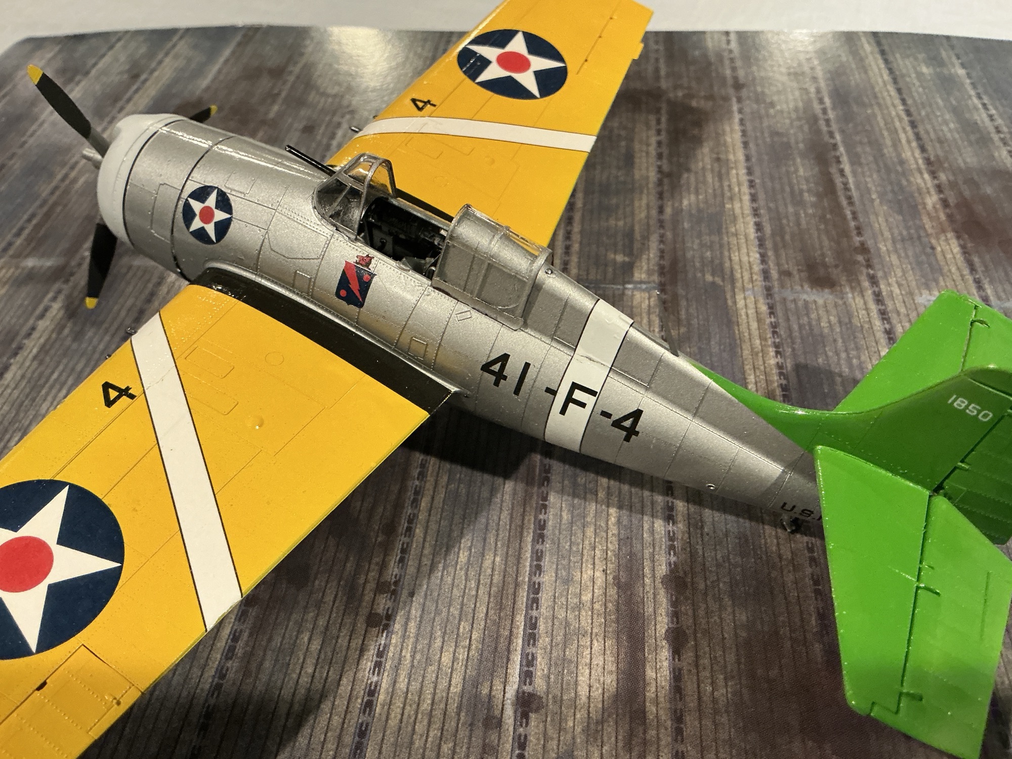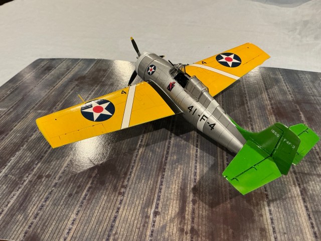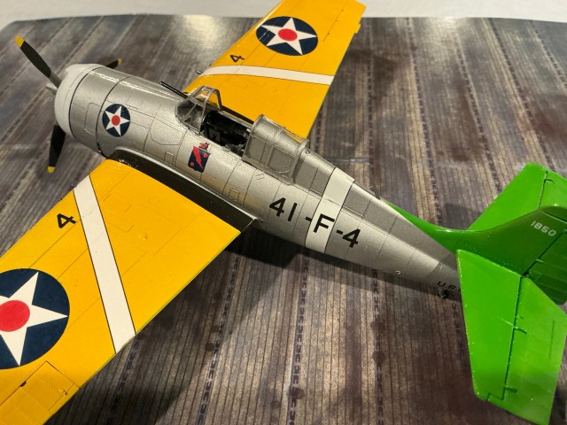 This particular aircraft was assigned to Lt Charles “Windy” Shields, who stayed with VF-41 through operation Torch more than two years later. There he scored at least two kills, a D.520 and a Hawk 75. He made ace in a Hellcat in the Pacific.