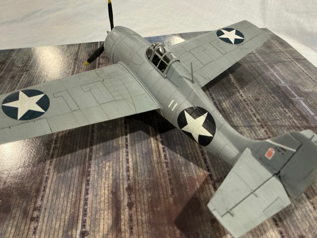 I chose this subject as a typical representative of Enterprise‘ contribution to the opening days of battle. In almost every way it is typical of the standard Blue-Grey over Grey camo worn by every other Wildcat in the campaign.