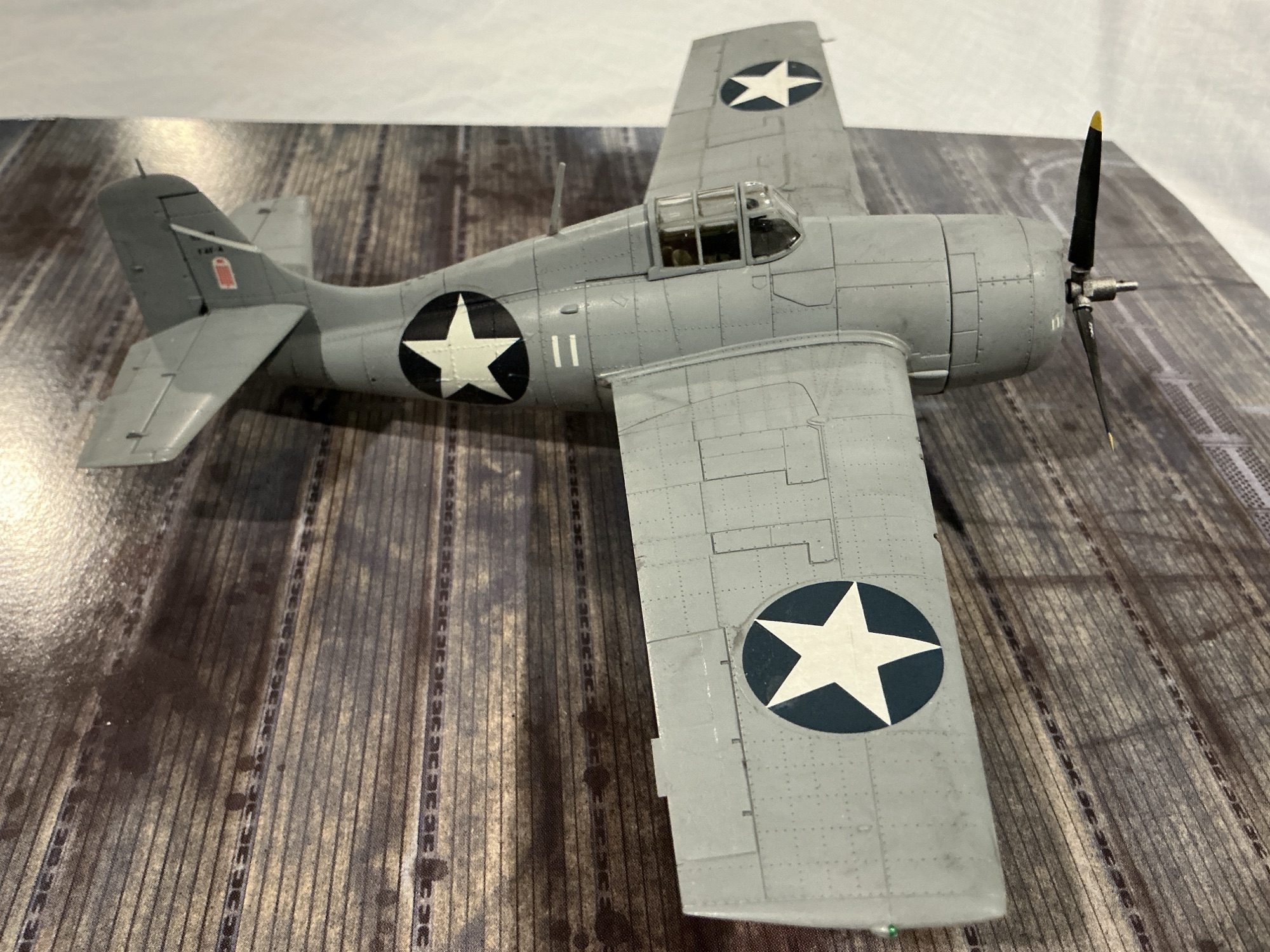 I chose this subject as a typical representative of Enterprise‘ contribution to the opening days of battle. In almost every way it is typical of the standard Blue-Grey over Grey camo worn by every other Wildcat in the campaign.