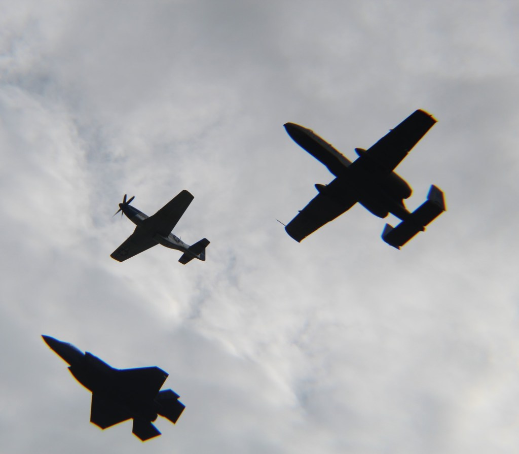 Nothing like a Mustang, Thunderbolt and Lightning all in one picture! Or maybe I should say P-51, A-10 and F-35.